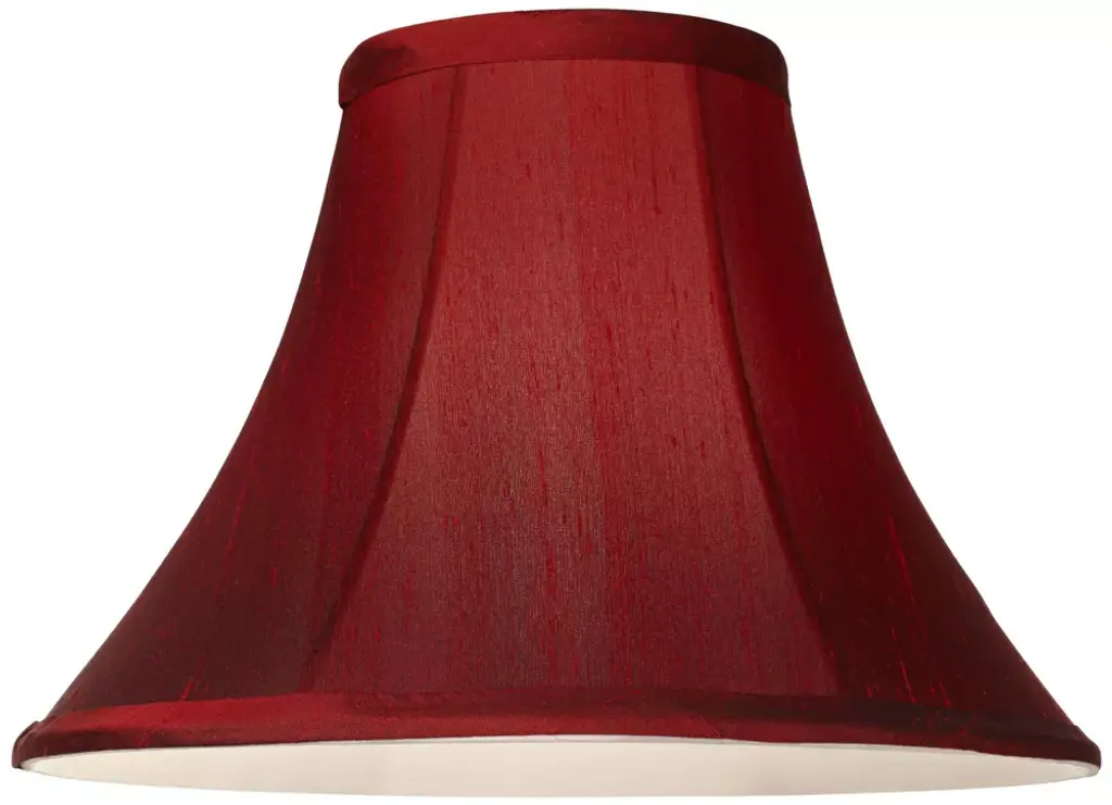 Bold color enhances the gentle curves of this set of two handsome red bell lamp shades. An ideal way to refresh a favorite lamp and add color to a room, the shade features a dramatic sloped side bell shape. From Springcrest Collection™, this set includes harps and finials.