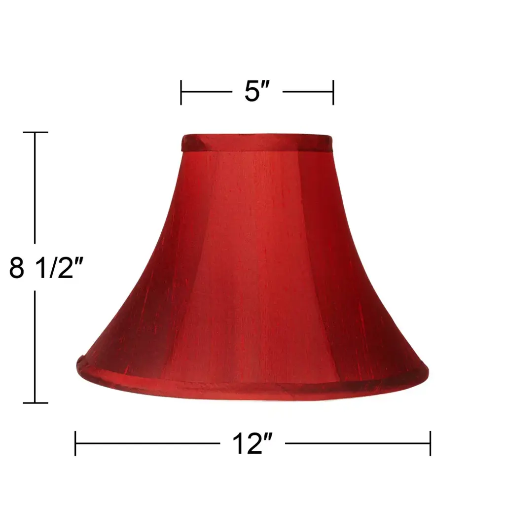 Springcrest Collection Set Of 2 Bell Lamp Shades Deep Red Small 5" Top X 12" Bottom X 9" Slant X 8.5" High Spider Replacement Harp And Finial Fitting