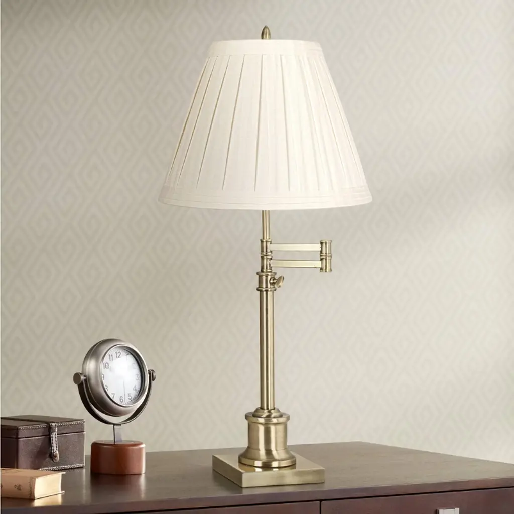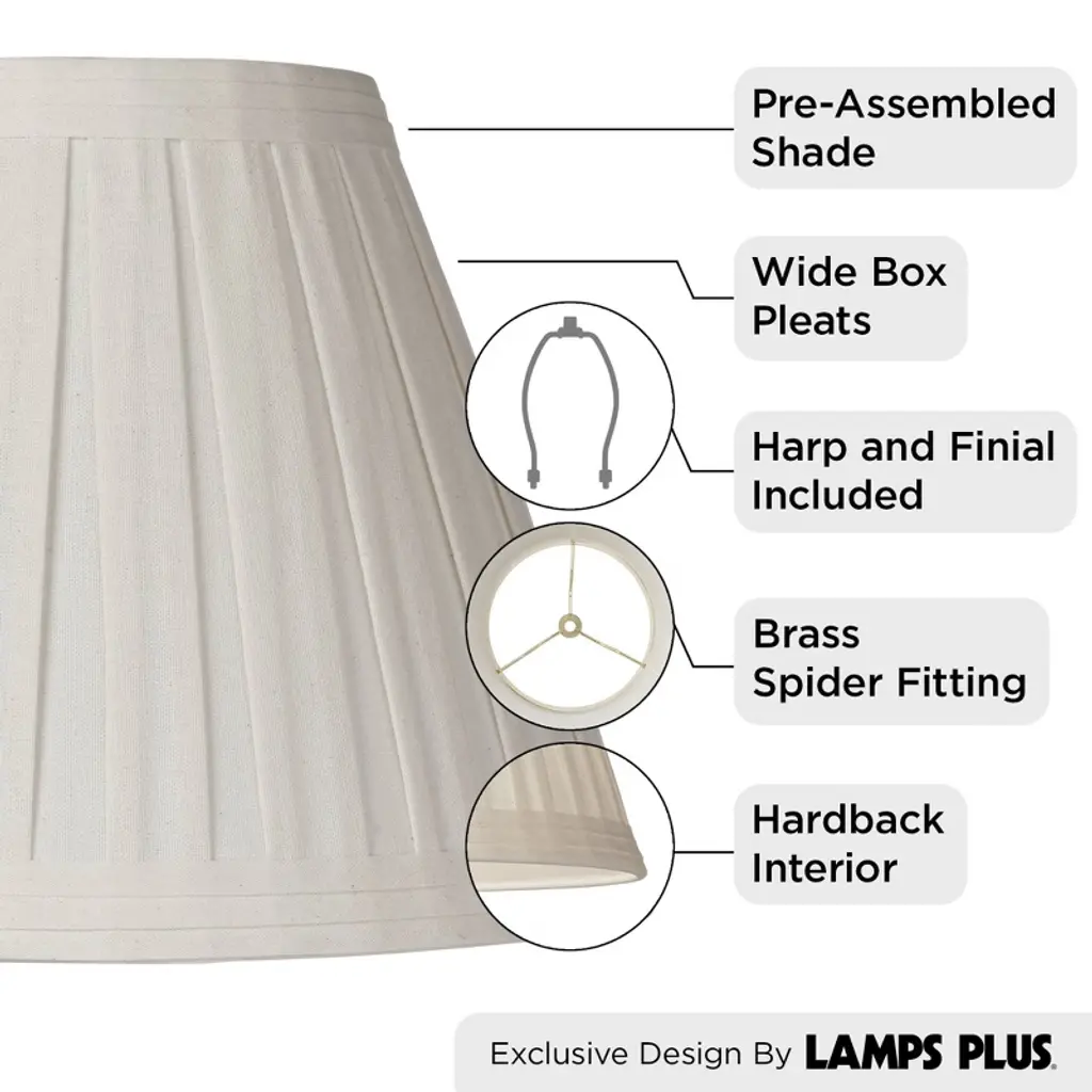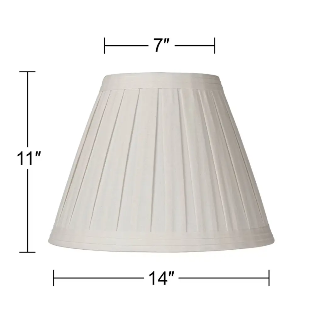 Update a favorite lamp with this handsome pleated shade design. The shade comes in a creme linen fabric with wide box pleats for decoration. There is self trim top and bottom. From the Springcrest Collection brand of traditional lamp shades.