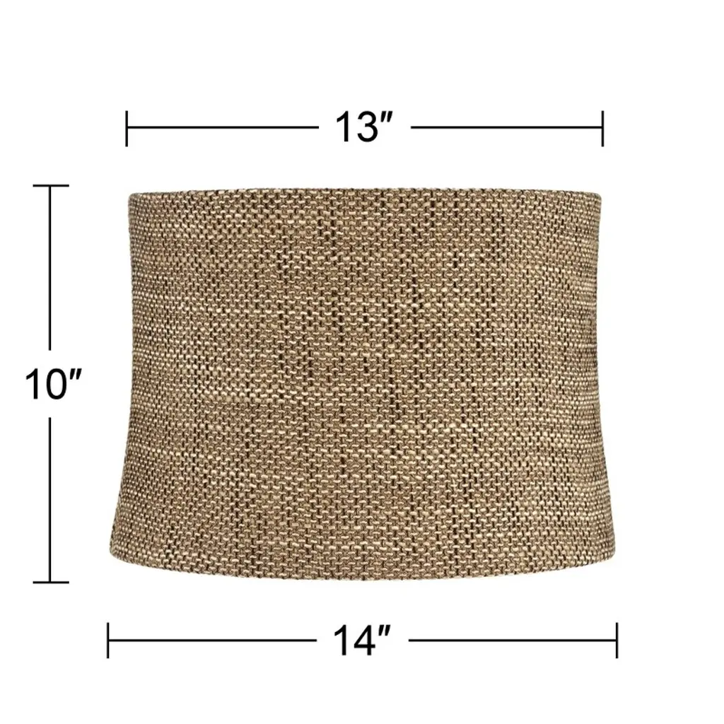 The versatility and bold style of this softback drum lamp shade creates a burlap-like look that adds earthy appeal to any accent or table lamp. From Springcrest Collection, its rugged, texturized linen fabric surface delivers a notable look in a transitional space. Enjoy a blend of charcoal and brown in a shade lined with cream cotton and poly blend lining. Subtle rolled trim offers a fine finish.