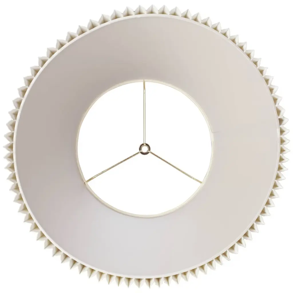 This ivory shade is the perfect touch to round out any decor. Knife pleated. Empire shape. Spider fitter. The correct size harp is included free with this shade. From the Springcrest Collection lamp shade brand.