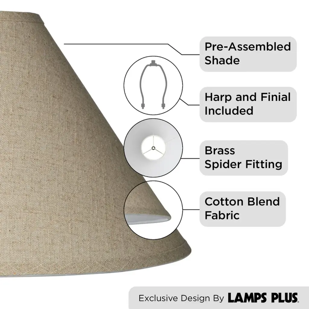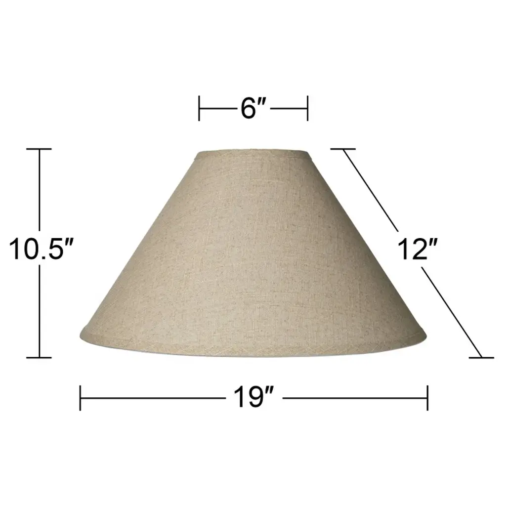Springcrest Fine Burlap Large Empire Lamp Shade 6" Top X 19" Bottom X 10.5" High X 12" Slant (Spider) Replacement With Harp And Finial