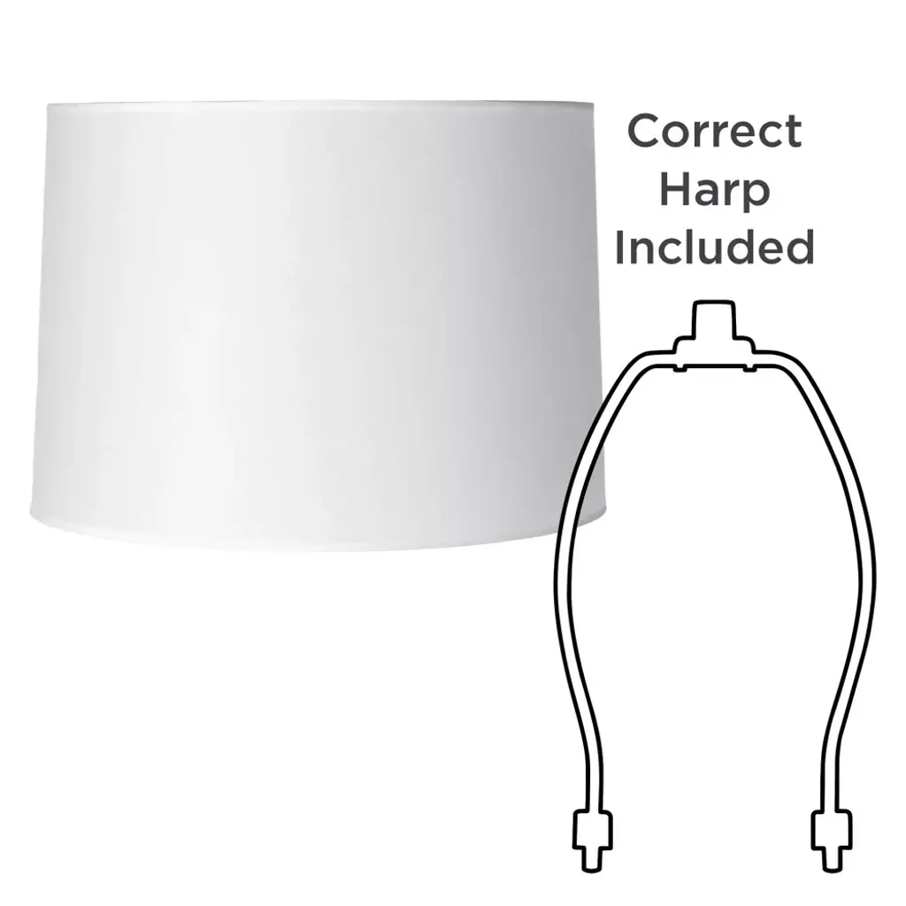 Springcrest Hardback White Medium Drum Paper Lamp Shade 15" Top X 16" Bottom X 11" Slant X 11" High (Spider) Replacement With Harp And Finial