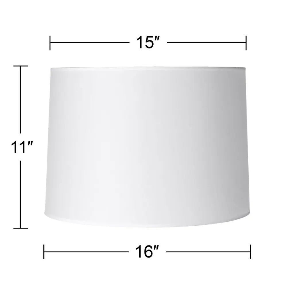 This contemporary hardback white drum shade is made of a white mica paper. It features a chrome finish spider fitting. Use it to dress up an existing lamp base with fresh style. From the Springcrest Collection brand of lamp shades.