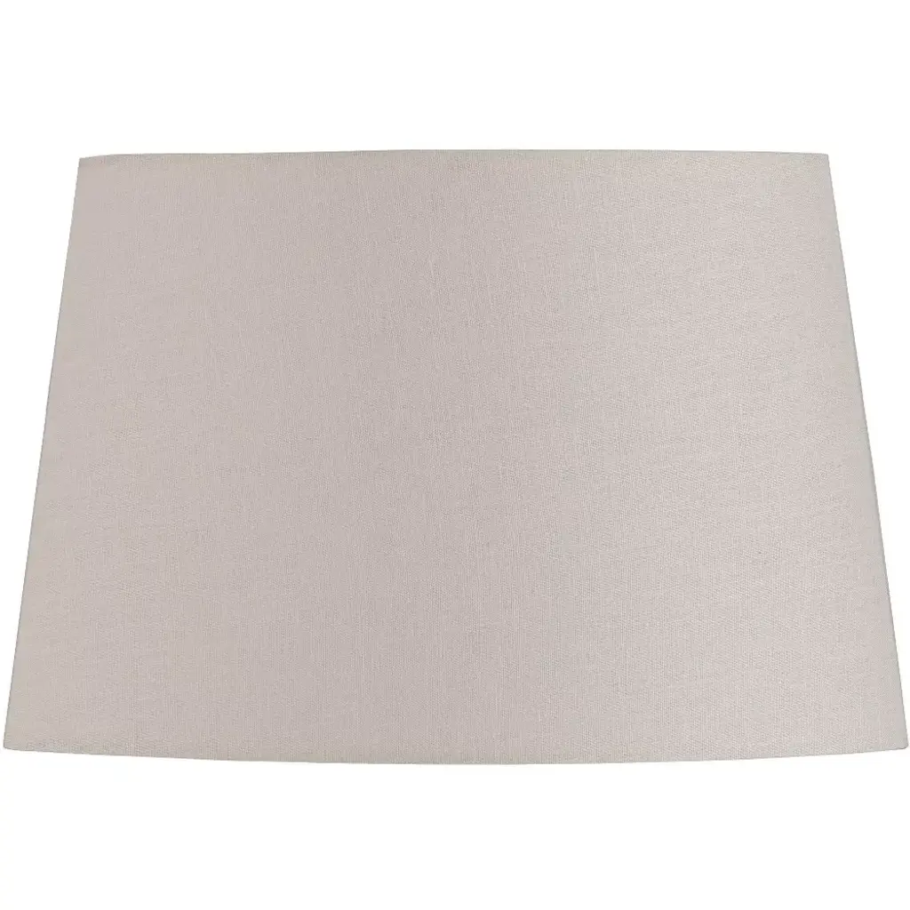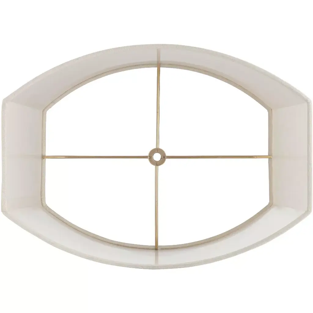 Crisp and clean, this hardback oval lamp shade adds simple structure to modern and classic motifs. This clean-lined design features ivory linen fabric with an unlined interior. A rolled trim smooths out the edges while the brass spider fitter radiates inside. Correct size harp and finial are included.