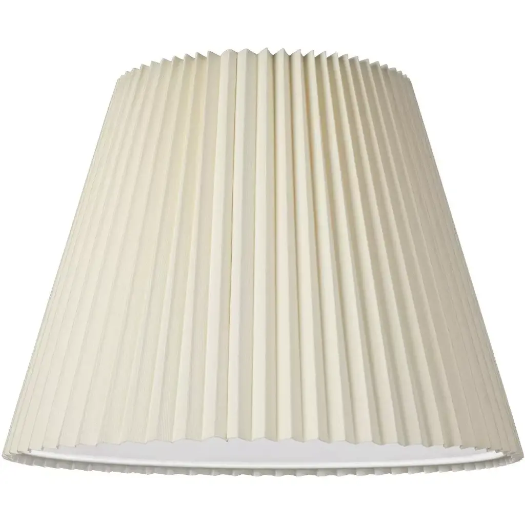 This ivory shade is the perfect touch to round out any decor. From the Springcrest Collection of lamp shades, it features knife pleats. Bell-shaped with hardback white polystyrene inner liner. Spider fitter. Polished brass finish fitter.