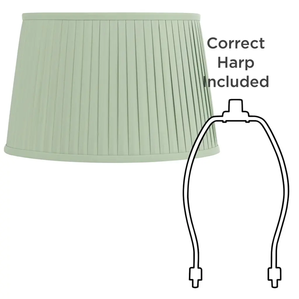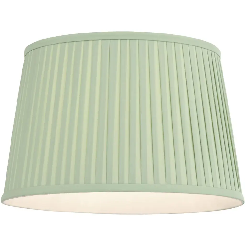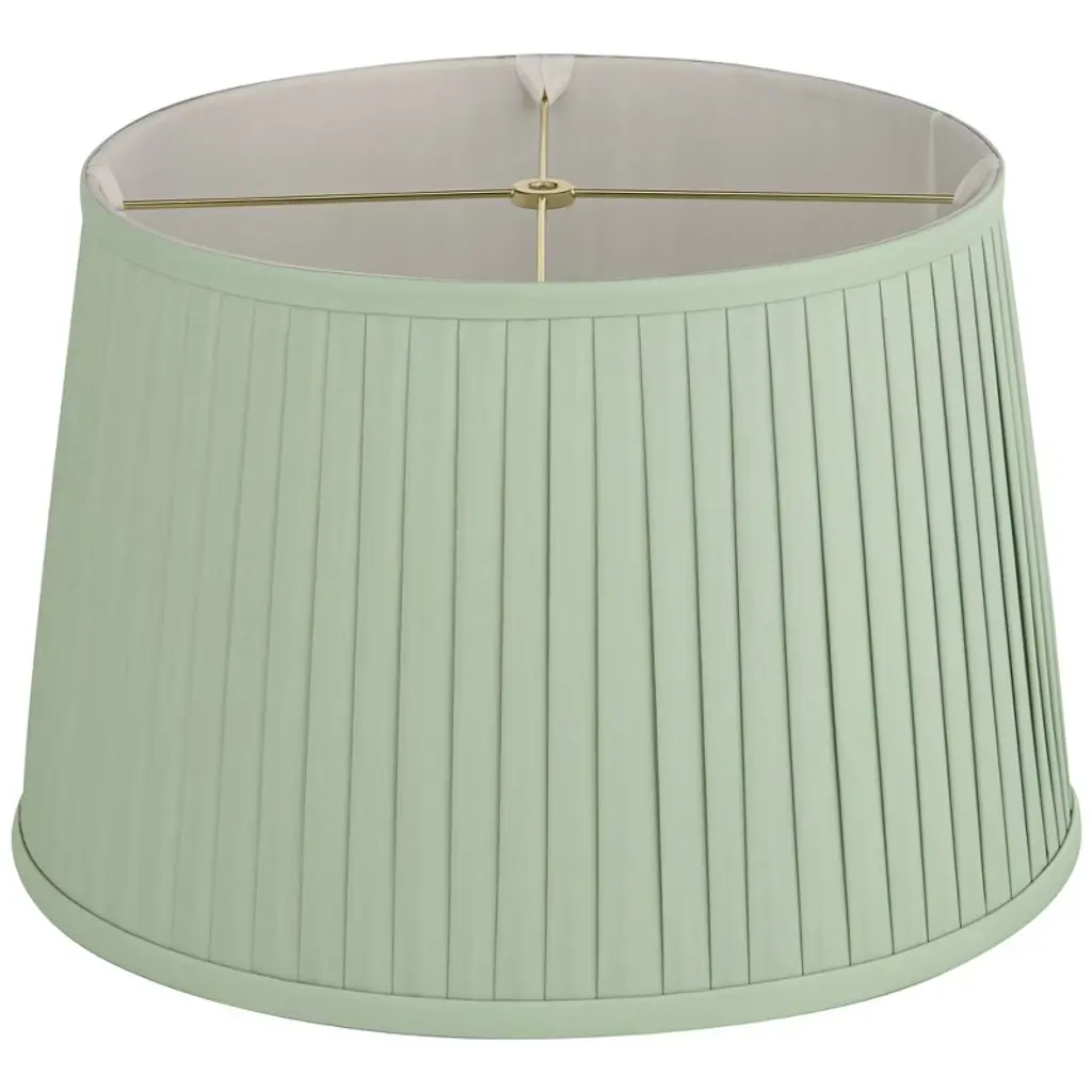 Stylish pleating lends classic flair to this traditional tapered drum lamp shade. From Springcrest Collection™, it boasts a celadon green faux silk cover, offering versatility and beautiful, bright illumination to your home. The shade is complete with a white polyester lining and includes a polished brass finish fitter.