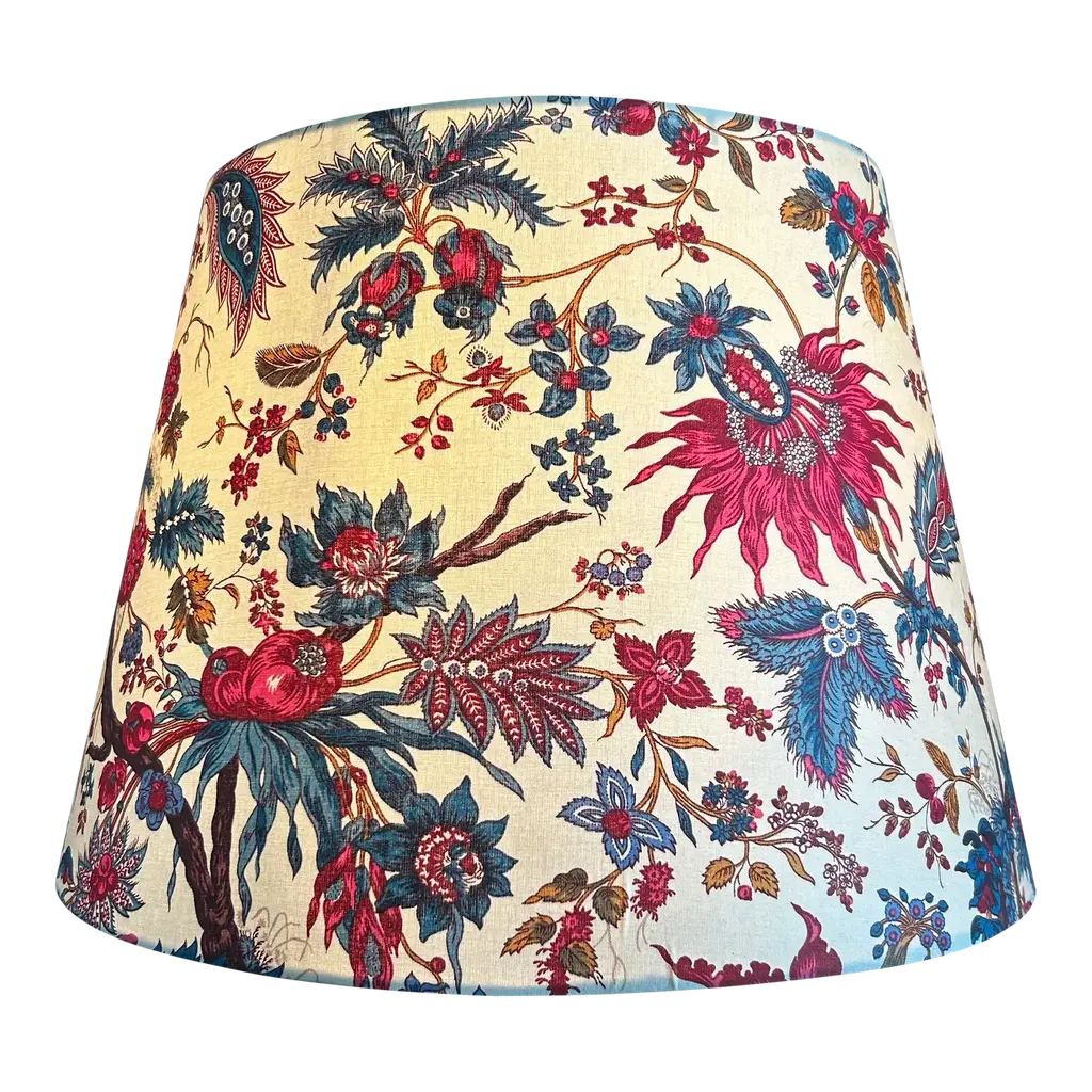 Take advantage of the design-forward floral print on this softback drum lamp shade from Springcrest Collection™. An earthy palette of multicolor blooms on a lovely sage cotton and poly blend fabric balances multi-tonal design schemes and adds a fresh finish to neutral decor. Explore the variety of colors that saturate a charming flared drum silhouette with self-fold trim and a white poly lining. The correct size harp and a finial are included free with this shade.