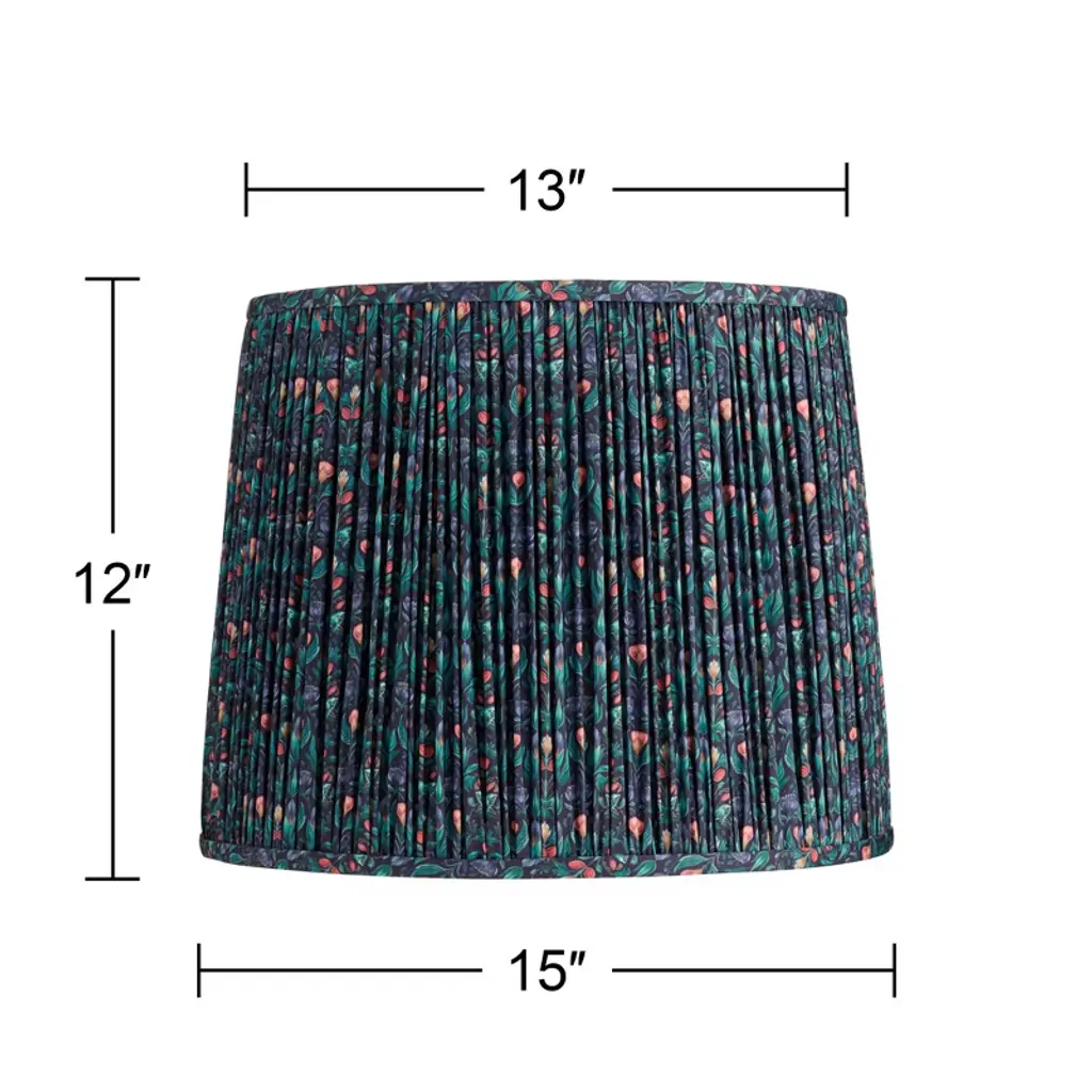 Springcrest Sally 13" Top X 15" Bottom X 12" High X 12" Slant Print Lamp Shade Replacement Medium Blue Green Drum Farmhouse Pleated Floral Spider Harp