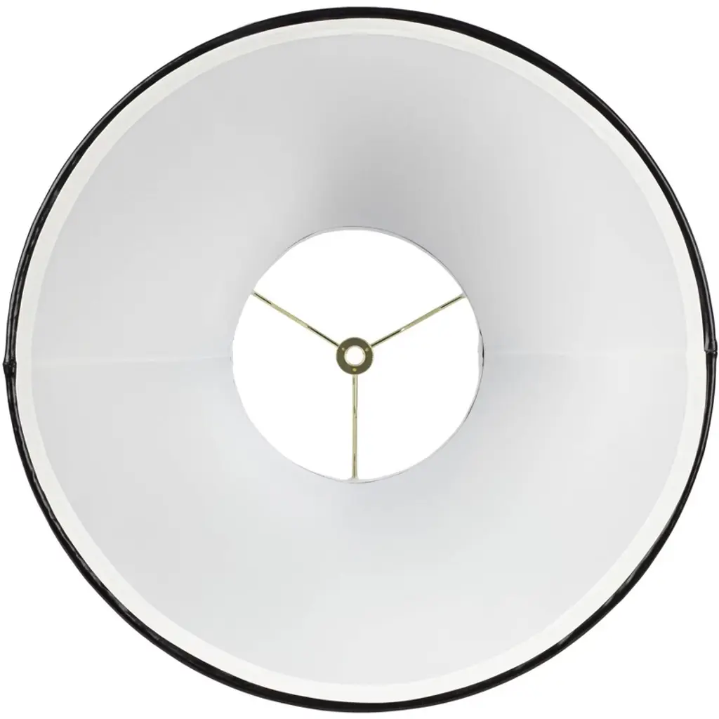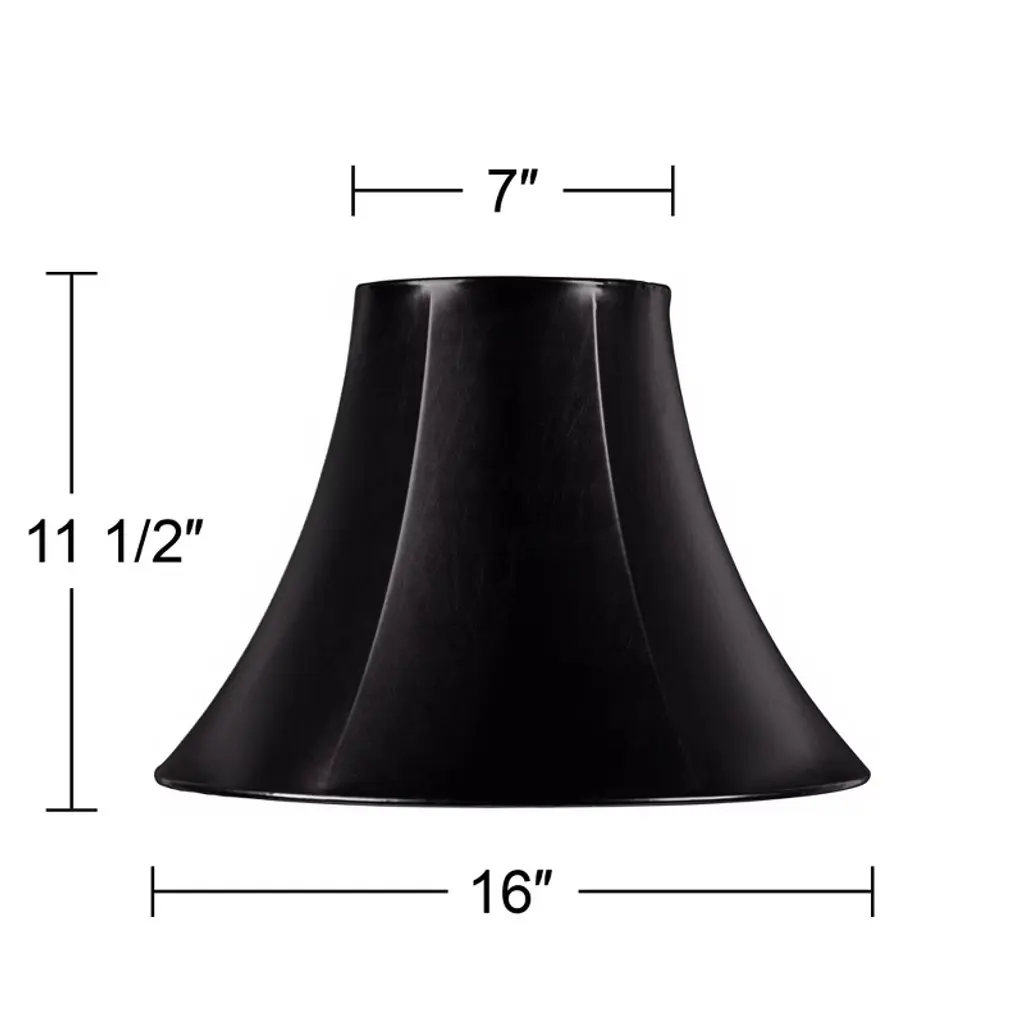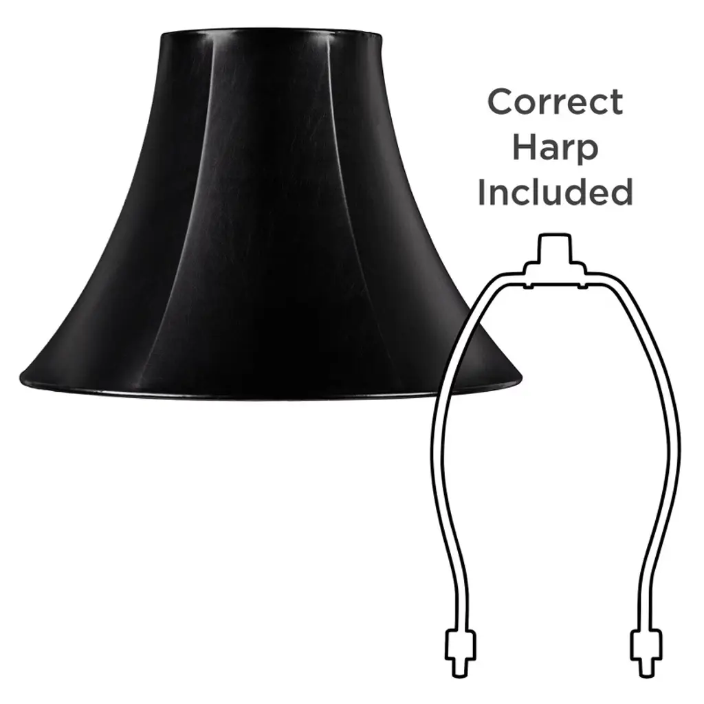 Fall in love with antique lamps all over again by adding this set of two black faux leatherette bell lamp shades. The set is sleek and classy, offering a dramatic curved bell shape that captures attention in any living space. A polished brass spider fitter is built-in and correctly sized harps and finials are included.
