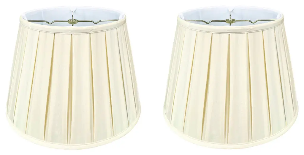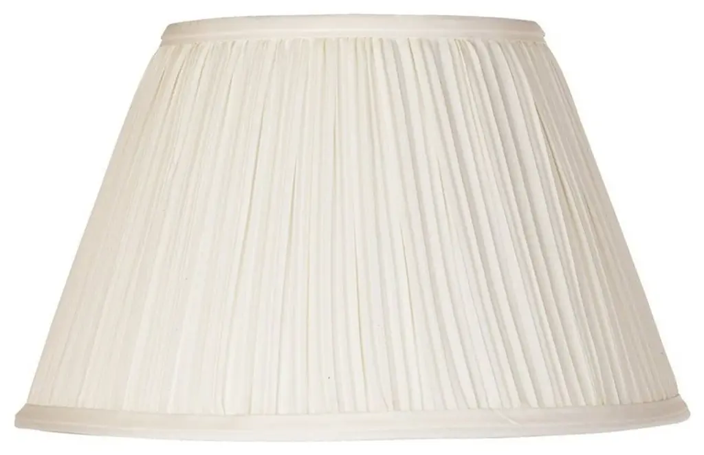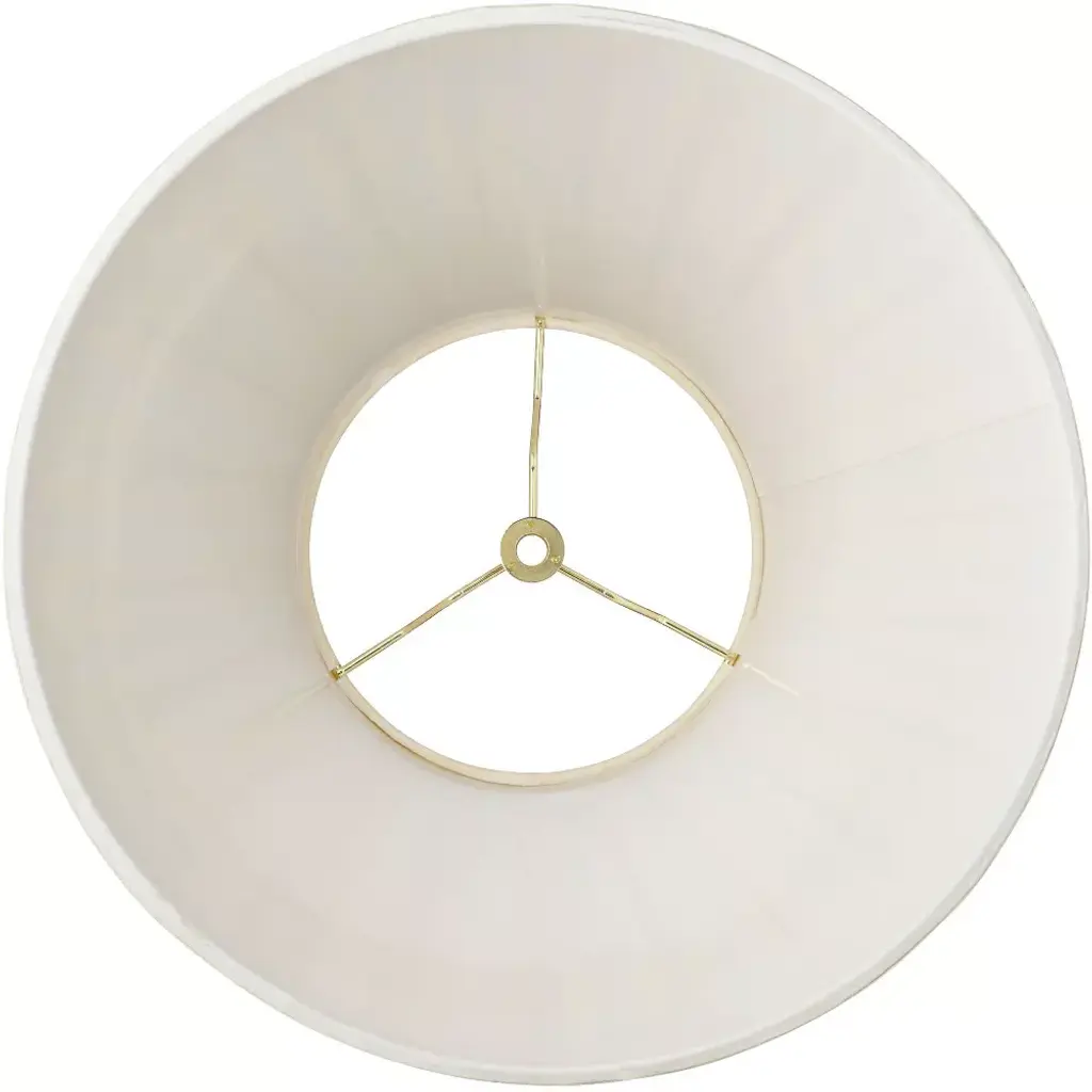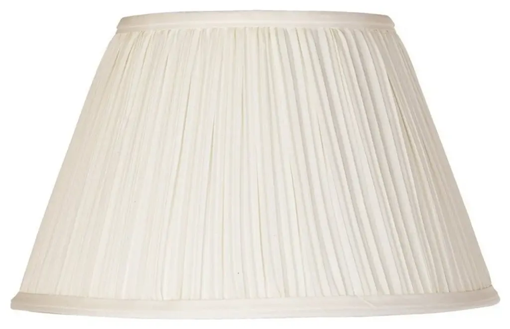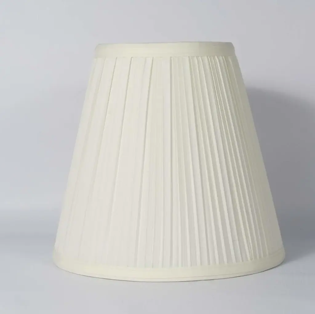 Update a favorite lamp with these handsome pleated shades. Each shade comes in an off-white linen fabric with wide box pleats for decoration. There is self trim top and bottom. Spider fittings.