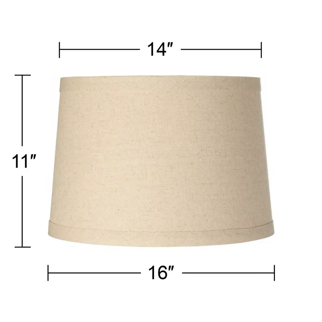 Springcrest Set Of 2 Drum Lamp Shades Burlap Medium 14" Top X 16" Bottom X 11" High Spider With Replacement Harp And Finial Fitting