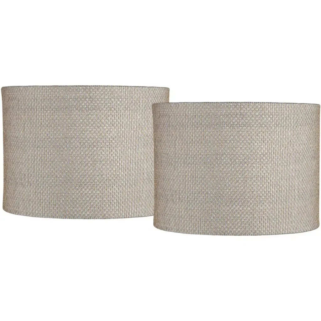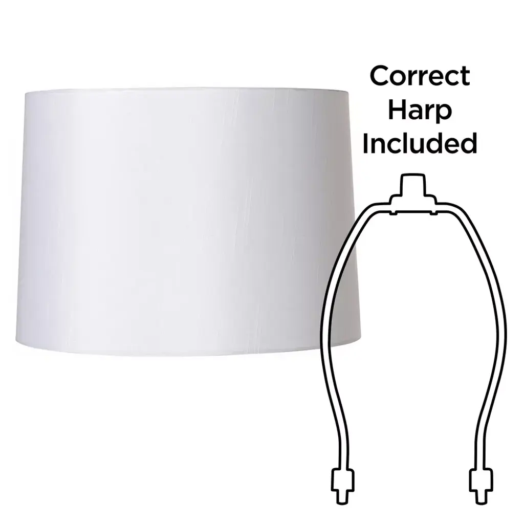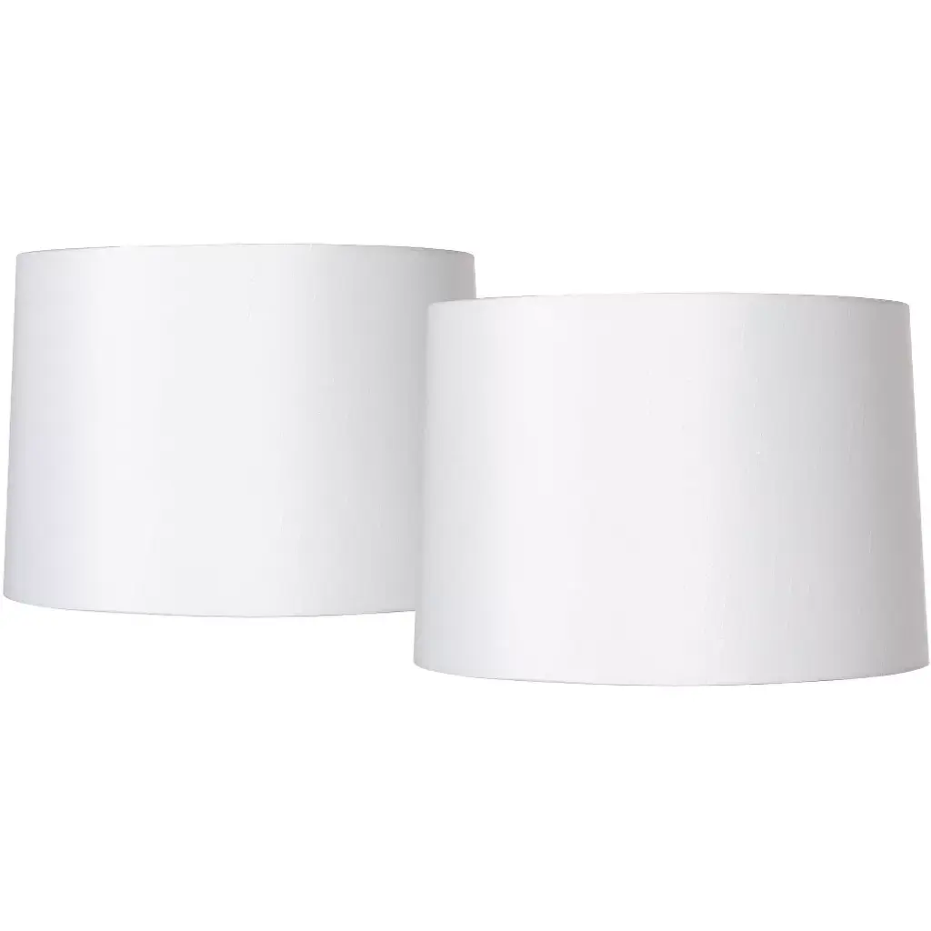 Springcrest Set Of 2 Drum Lamp Shades White Fabric Medium 13" Top X 14" Bottom X 10" High Spider Replacement Harp And Finial Fitting