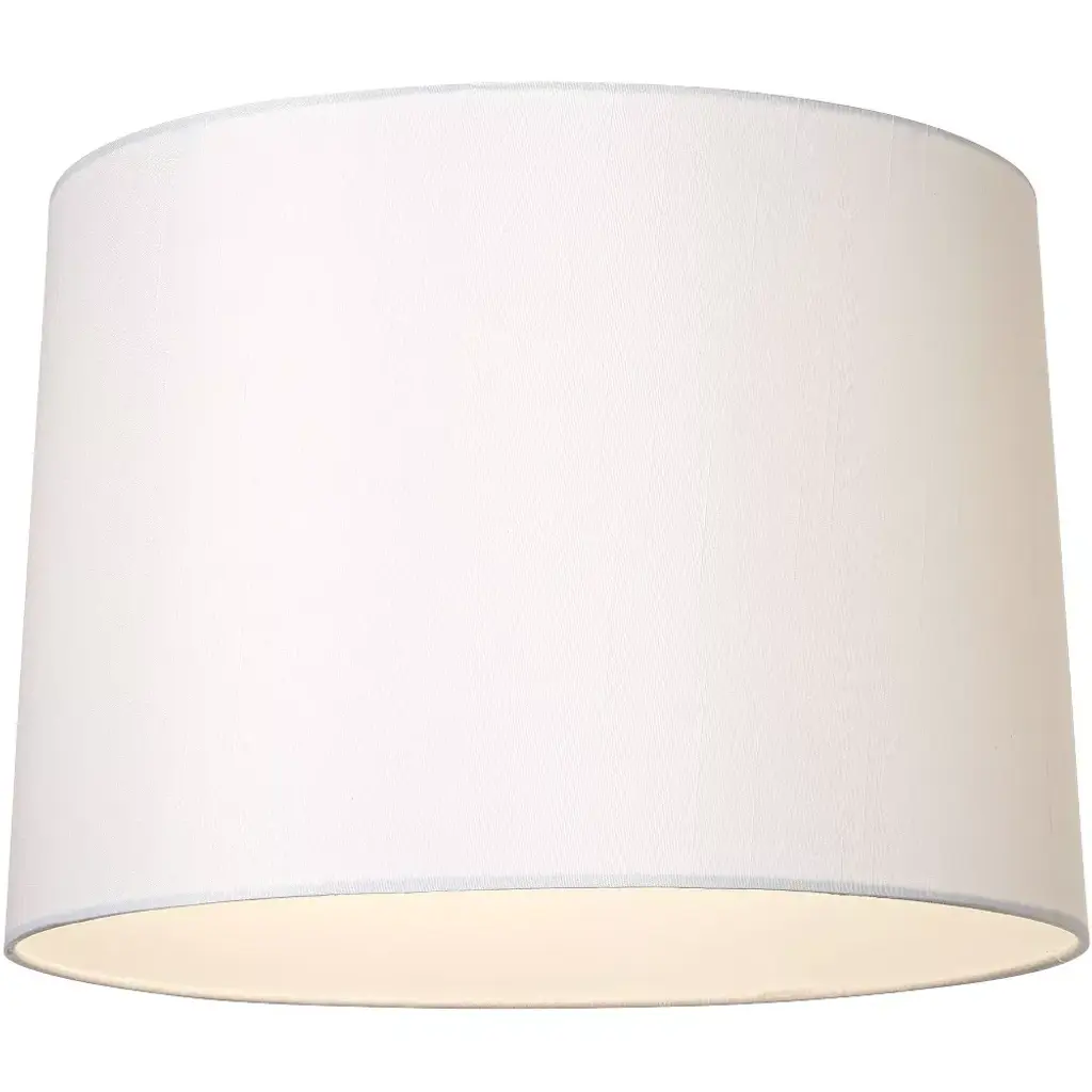 Brighten your decor with a new lamp shade look. These white fabric hardback drum shades have a sleek, modern look to them and a tapered drum profile. They have a rolled edge for a clean, contemporary look with no lining. A chrome finish spider fitting is inside. From the Springcrest Collection.
