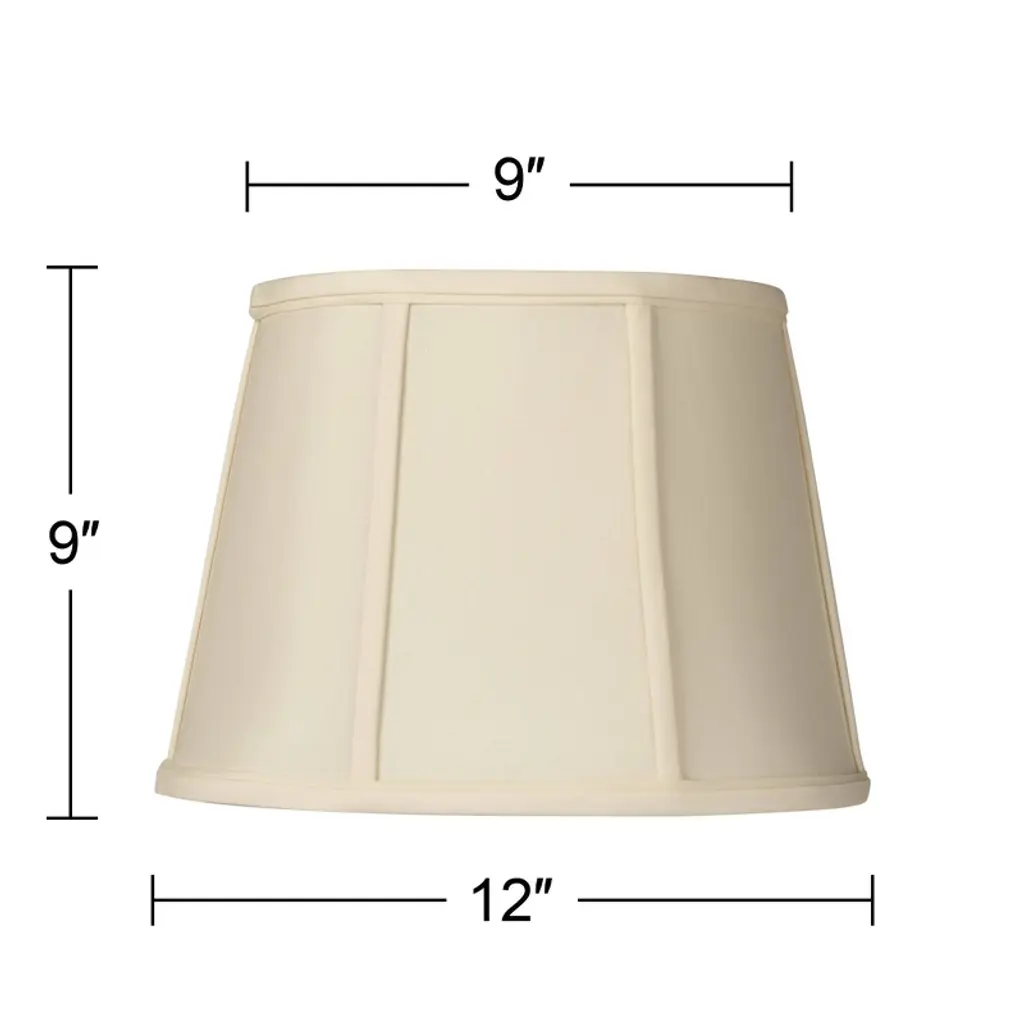 Springcrest Set Of 2 Oval Lamp Shades Cream Small 9" Wide X 6.5" Deep At Top 12" Wide X 8" Deep At Bottom 9" High Spider Harp Finial