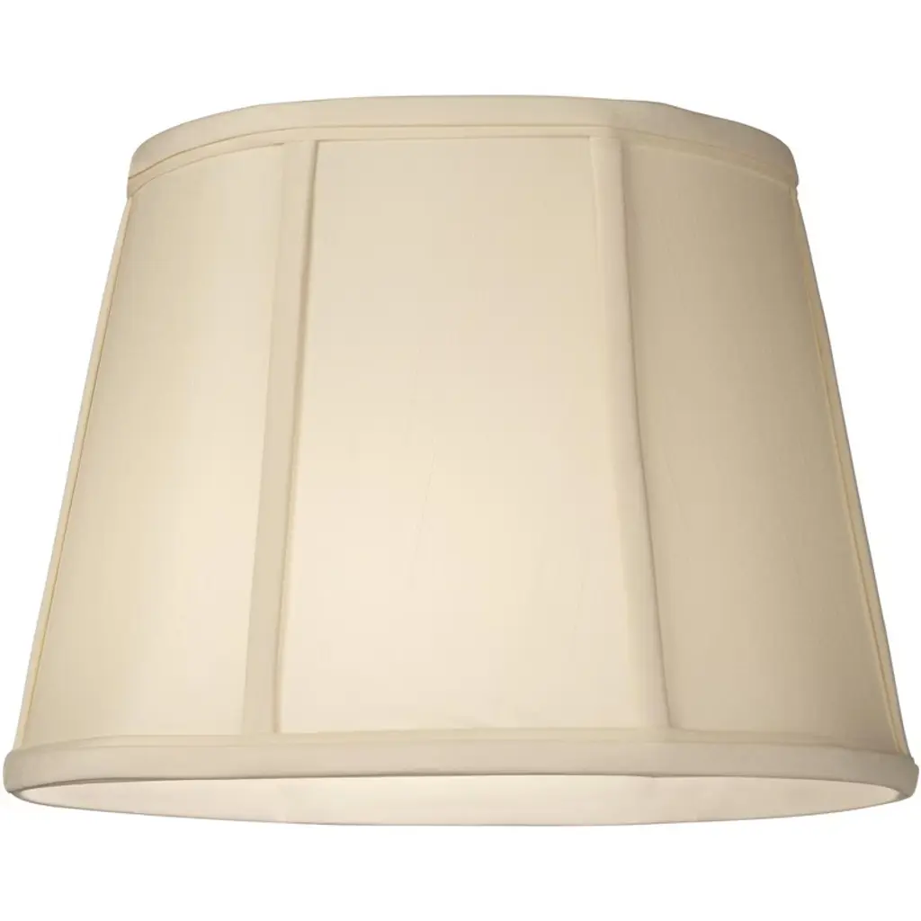 This set of two oval lamp shades offers a clean and classic look for your favorite lamps. They come in a cream stretch fabric with vertical ribs for a classic look and feel. Fold-over self trim is on both the vertical ribs and the top and bottom trim for a tailored touch. Inside is a white fabric liner and a polished brass finish spider fitter.