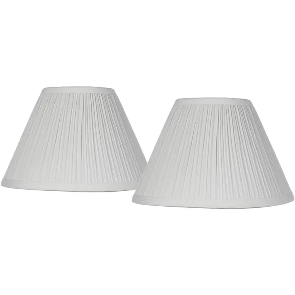 This set of two mushroom pleated hardback lamp shades in ivory white has a traditional look. They feature fold over trim that adds a soft touch to each pleated shade. They feature spider fittings and are from Springcrest Collection™.
