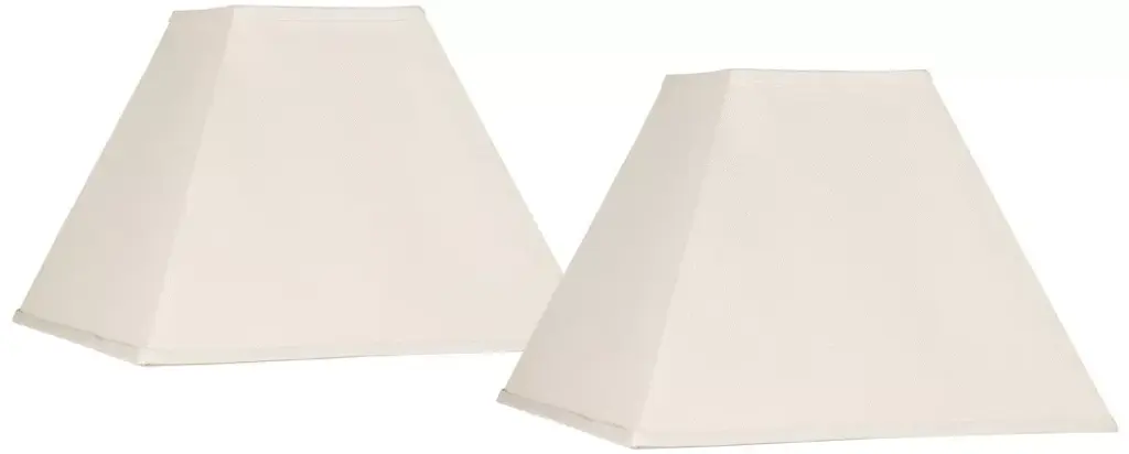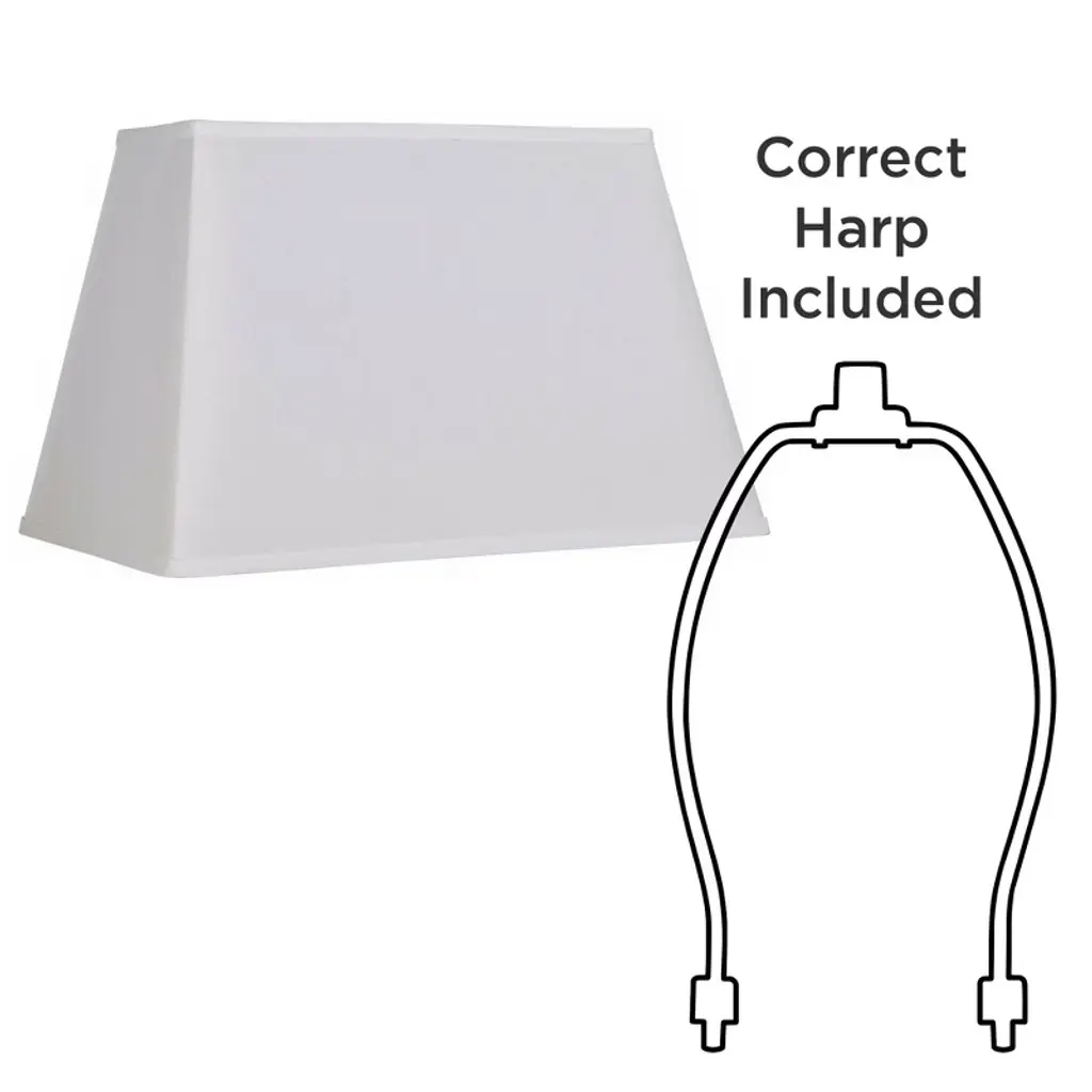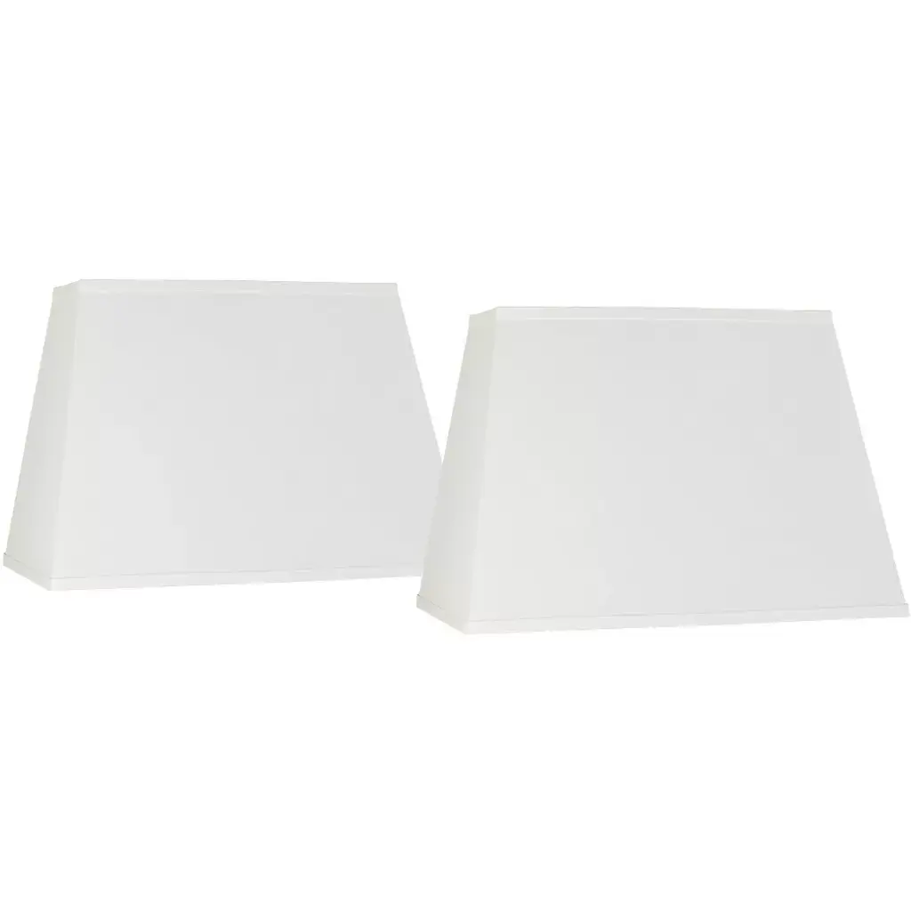 This set of two hardback lamp shades features tailored white fabric and white lining for crisp, bright lighting. The rectangular shades allow you to position it close to a wall or in a small space, perfect for consoles and nightstands. From Springcrest Collection™, the set features white finish spider fitters and correctly sized harps and finials.