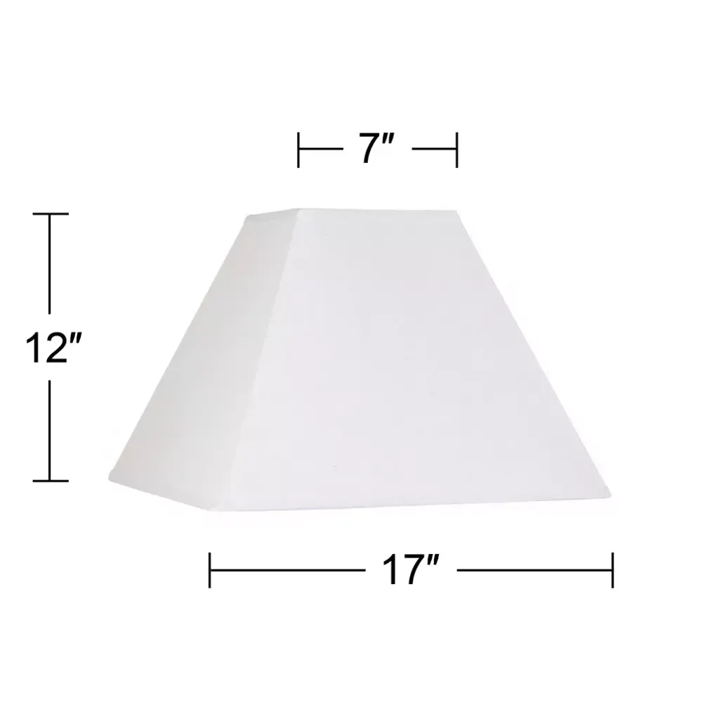 Springcrest Set Of 2 Square Lamp Shades White Large 7" Top X 17" Bottom X 13" Slant Spider With Replacement Harp And Finial Fitting