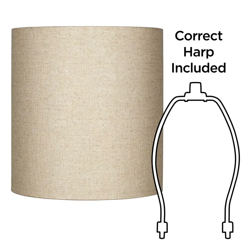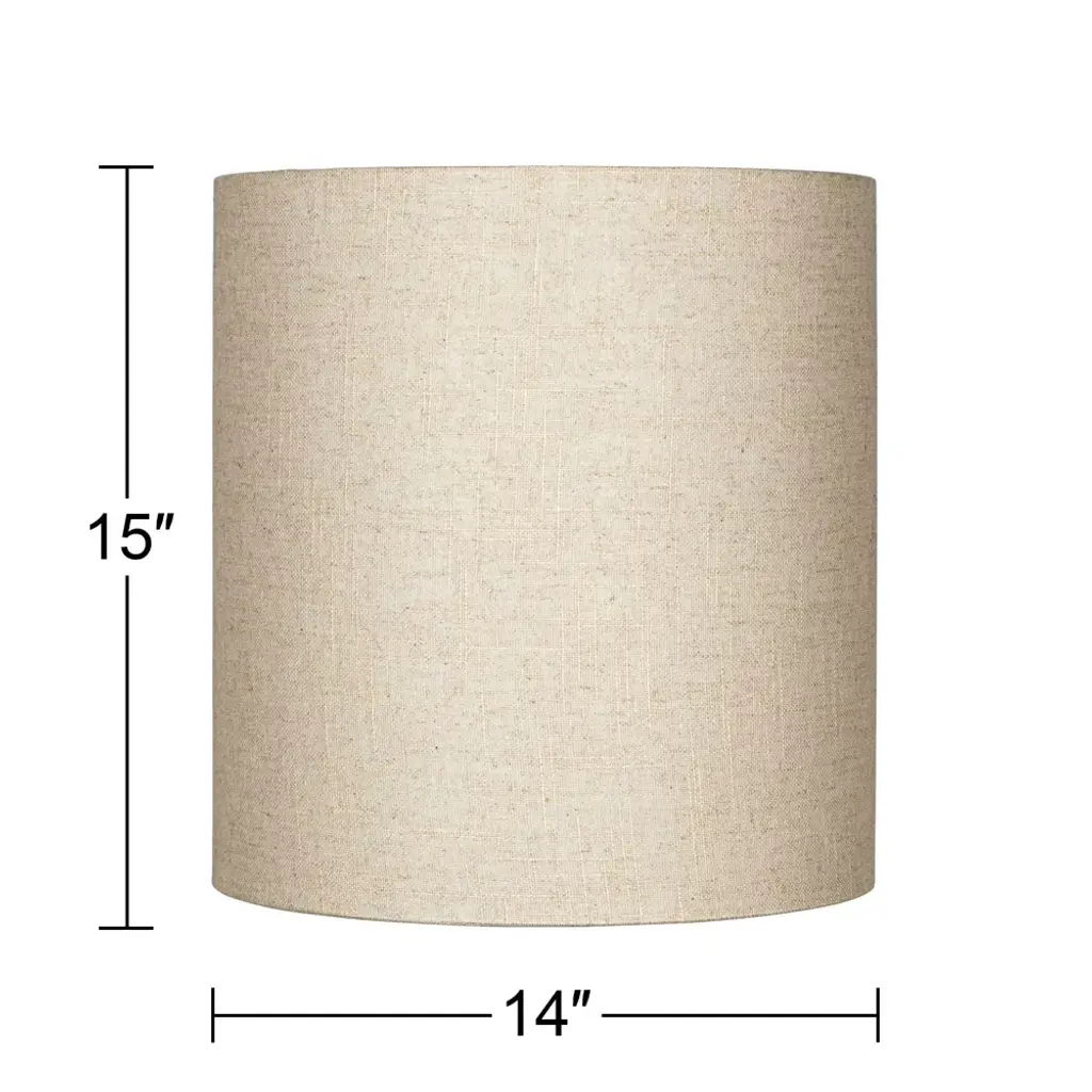 Springcrest Set Of 2 Tall Drum Lamp Shades Oatmeal Medium 14" Top X 14" Bottom X 15" High Spider Replacement Harp And Finial Fitting