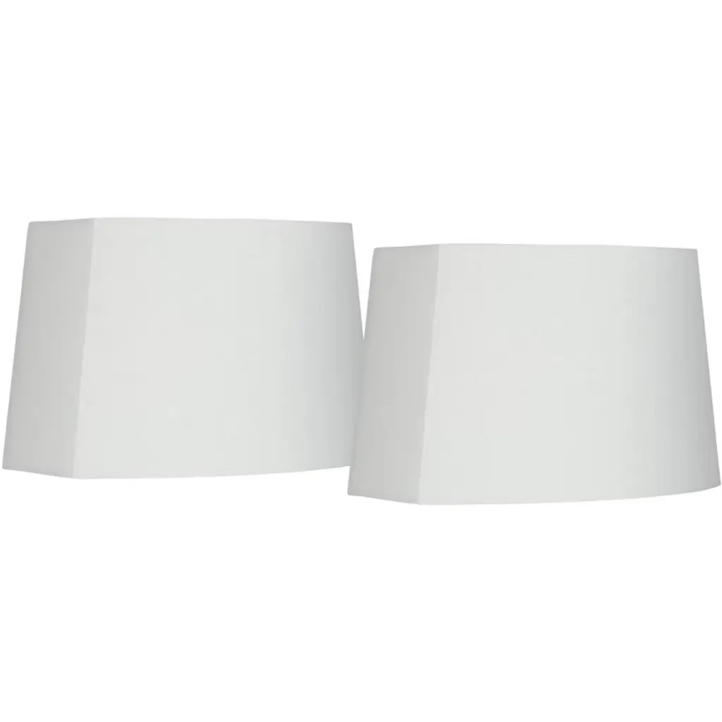 Replace an old lamp shade with one of these fresh offerings from the Springcrest Collection. In a convenient set of two, these white drum shades offer and clean simple look for your home lighting. They have ribbon trim on the top and bottom and a chrome finish spider fitter inside.