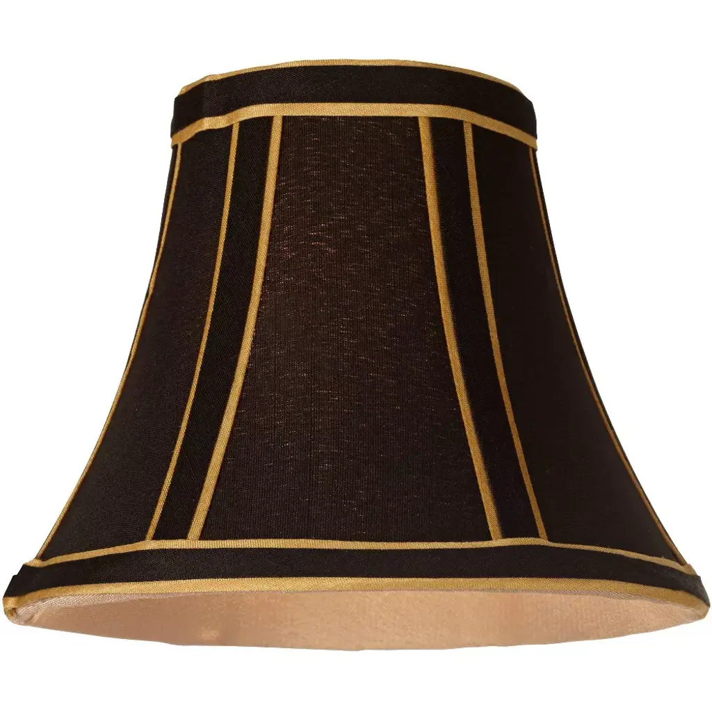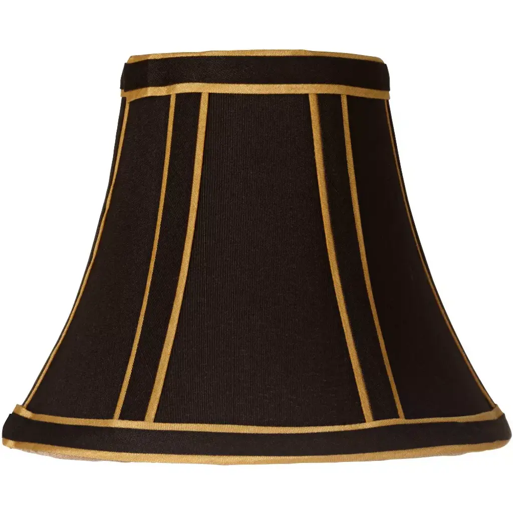 Dress up your chandelier with these glamorous black fabric with gold trim shades. The clip on shade design clips directly onto bulbs for easy installation. Recommended for use with maximum 25 watt incandescent candelabra bulbs, or LED candelabra bulbs. From the Springcrest Collection.