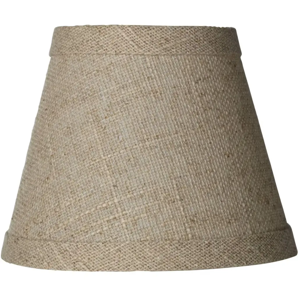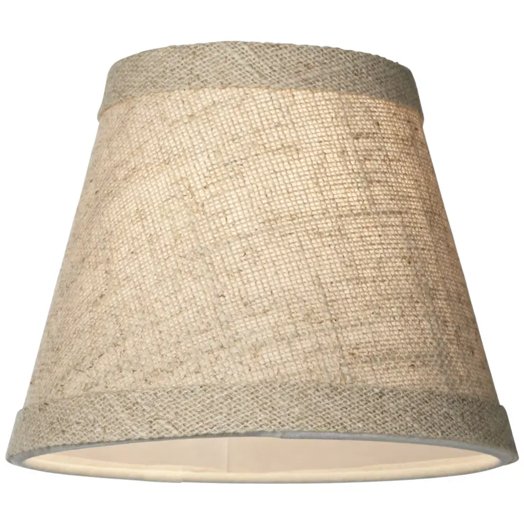 Add a crisp, updated touch to your lighting with these clip-on empire shade. The shades feature a cotton blend exterior, resembling fine burlap, with self-trim and a polished brass finish clip-on fitting. Recommended for use with maximum 25 watt incandescent candelabra bulbs, or LED candelabra bulbs.