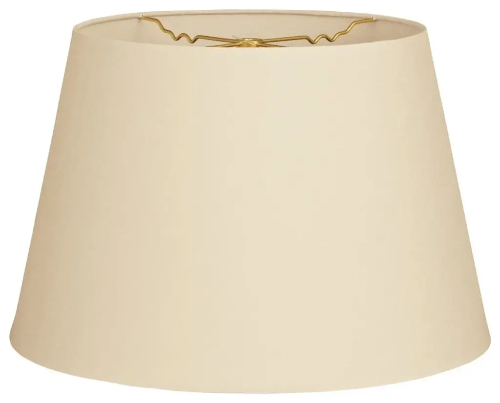 "This Tapered Shallow Drum Hardback Lampshade - Eggshell 13 x 18 x 12 is a part of Royal Designs, Inc. Timeless Hardback Lampshade Collection and is perfect for anyone who is looking for a simple yet stunning lampshade. Royal Designs has been in the lampshade business since 1993 with their multiple shade lines that exemplify handcrafted quality and value.Exterior Fabric: Silk-Type Hardback ShantungInterior Fabric: Off-White Hardback LiningWasher: Standard brass-finish spider fitter, use a finial to fasten shade Trim: Fabric on top and bottom is rolled over the edgesFrame: Heavy grade rust resistant brass frameBulb: Suggested maximum wattage is 150-watt for most sizesHeight is measured by vertical height from top to bottom, not slant of the shade"