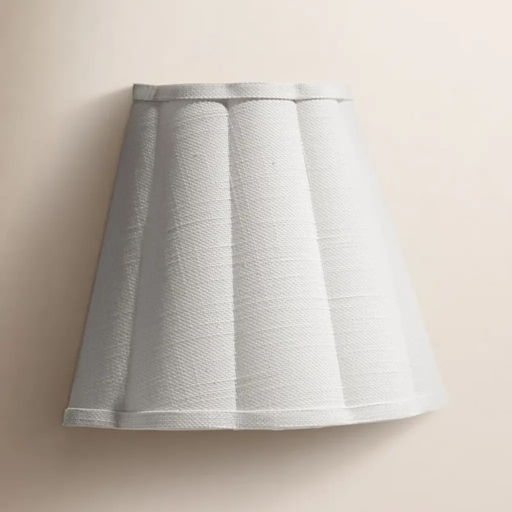 Urbanest hardback woven paper chandelier shadeThis shade measures 3" across the top, 6" across the bottom, and 5" overall height.Hardback empire shape. Clip-on for candleabra bulbs. Maximum recommended wattage is 40 watts.Lined in white.List price is for one shade