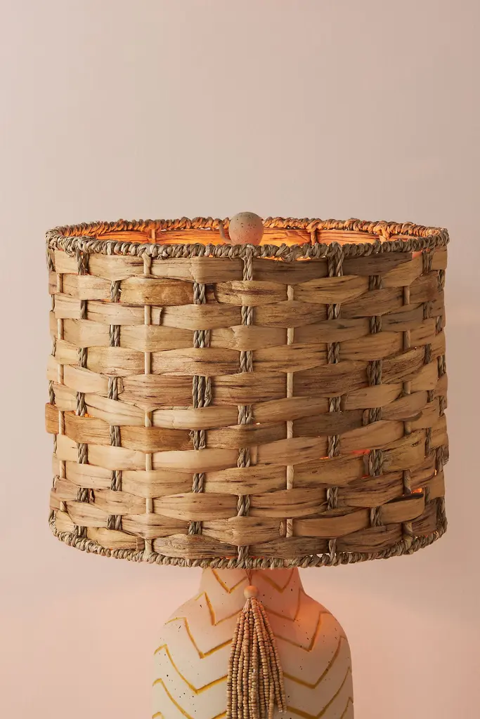 Handwoven from dried water hyacinth, this shade welcomes a touch of nature into your interior.