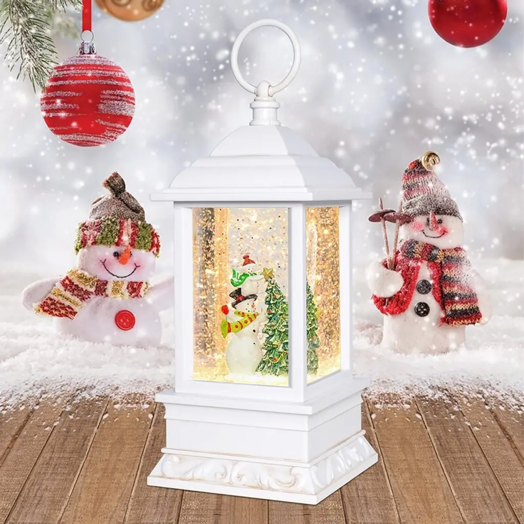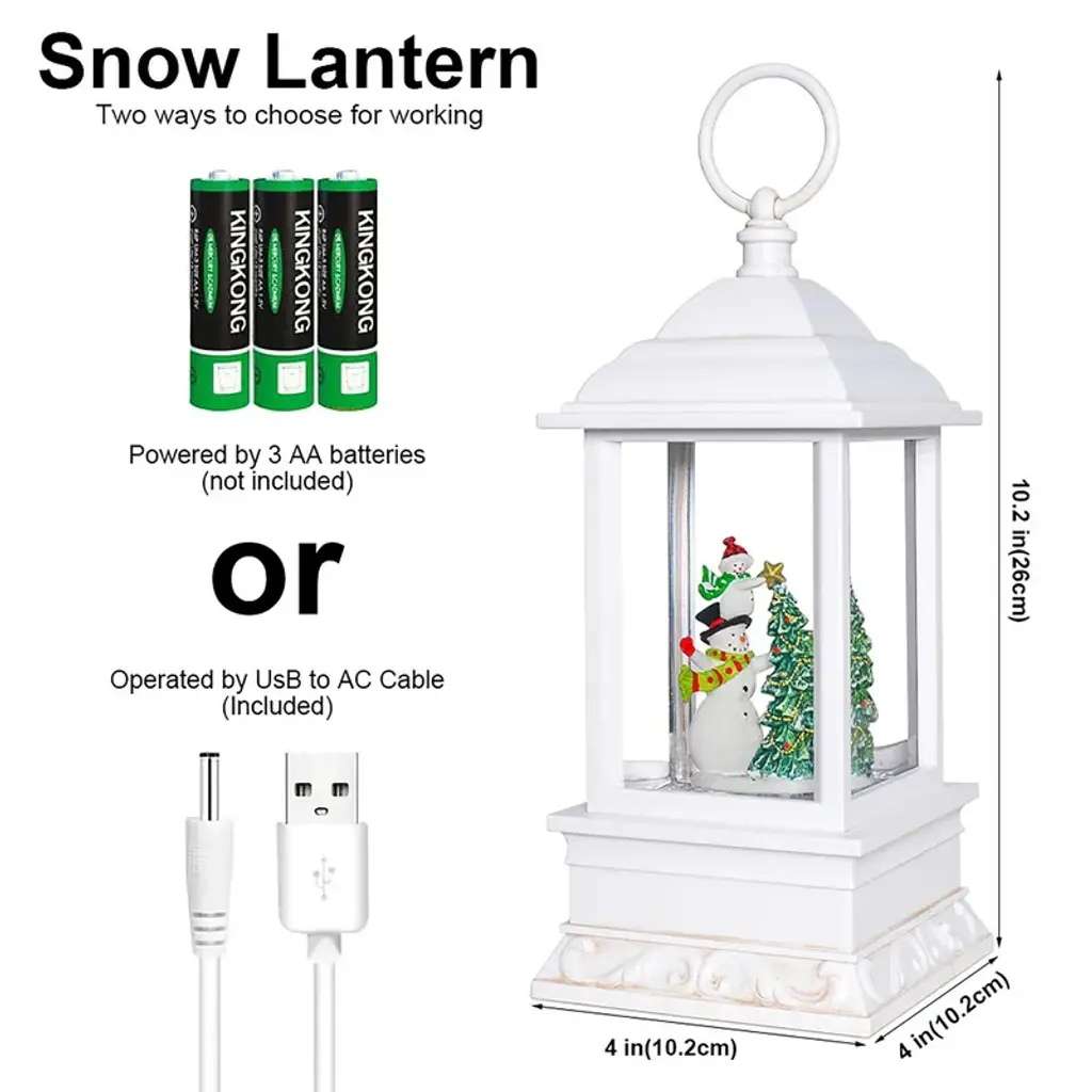 ⛄【SOFT LIGHTING & WHIRLING GLITTER】Our Christmas snow globe with soft light, when you open the button, the snowflakes will keep falling. Colorful glitters sequins become more dazzling and fascinating under the light, add warmth, sweetness and beauty to the holiday season. With the vintage lantern, this Christmas decor would stand out on any mantel or centerpieces.⛄【DURABLE AND PRACTICAL QUALITY】Made of plastic, it will not change color even after working for many years..Featuring a christmas themed lantern with glitter, creates your own little Christmas world.⛄【TWO POWER MODES MUSICAL LANTERN】Included USB power cable allows you operate the snow globe without batteries, just provide your own adapter. Or you can use 3 AA batteries (NOT INCLUDE), place it on everywhere you want, it's very convenient and easy to use.⛄【6H ON& 18H OFF TIMER】The christmas snow globes are designed with the latest environmental concept - timed off. When you switch to Timer,the snow globe light will light up and play Christmas music, and automatically turn off after 6 hours of work. 18 hours later, it will automatically turn on and cycle every 24 hours.⛄【CHRISTMAS GIFTS】Gorgeous and elegant looking, beautiful resin image and glitter sequins, you can decorate it anywhere in your home. The simplicity of our designs offers more versatility that easily complements Thanksgiving, Christmas and New Year decoration. They are also sweet and memorable gifts for your relatives and friends.
