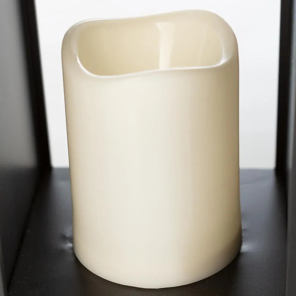 This candle lantern will add a soft glow to your evenings with its LED light inside. Whether you're relaxing with a good book or spending time on the patio or porch, this candle lantern is the perfect company. The rectangular candle lantern features a battery-powered LED candle inside. It is suitable for indoor or outdoor use. The candle provides an inviting glow that mimics a real candle flame without the hassle. Curl up with a good book or cup of tea and enjoy. Includes a 6-hour timer and requires 3 AAA batteries, not included.