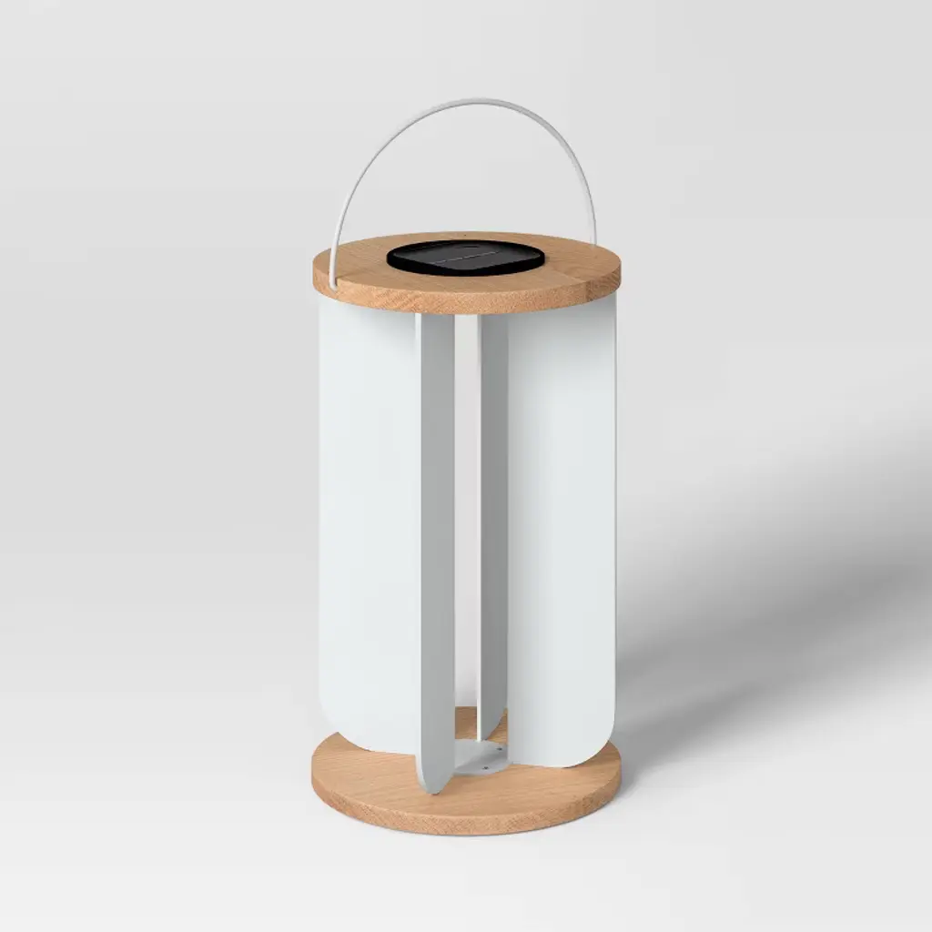 Brighten up your cozy outdoor nights with this Wood Solar LED Outdoor Lantern from Threshold™. Featuring a metal body and wooden stands, this weather-resistant lantern has a top loop for easy hanging anywhere on your patio. Powered by solar energy, the lantern features a fixed LED bulb and a battery case slide switch to turn it on and off. Threshold™: Looks like home, feels like you.