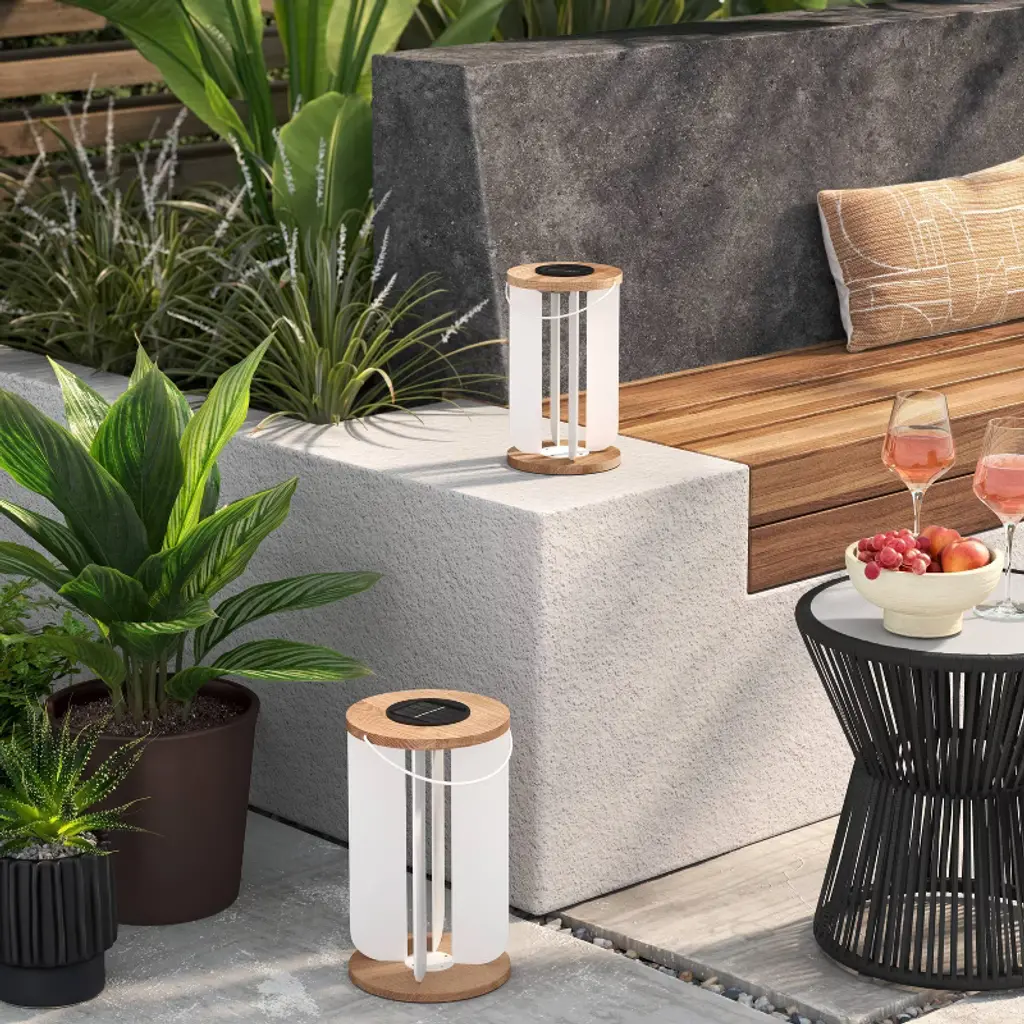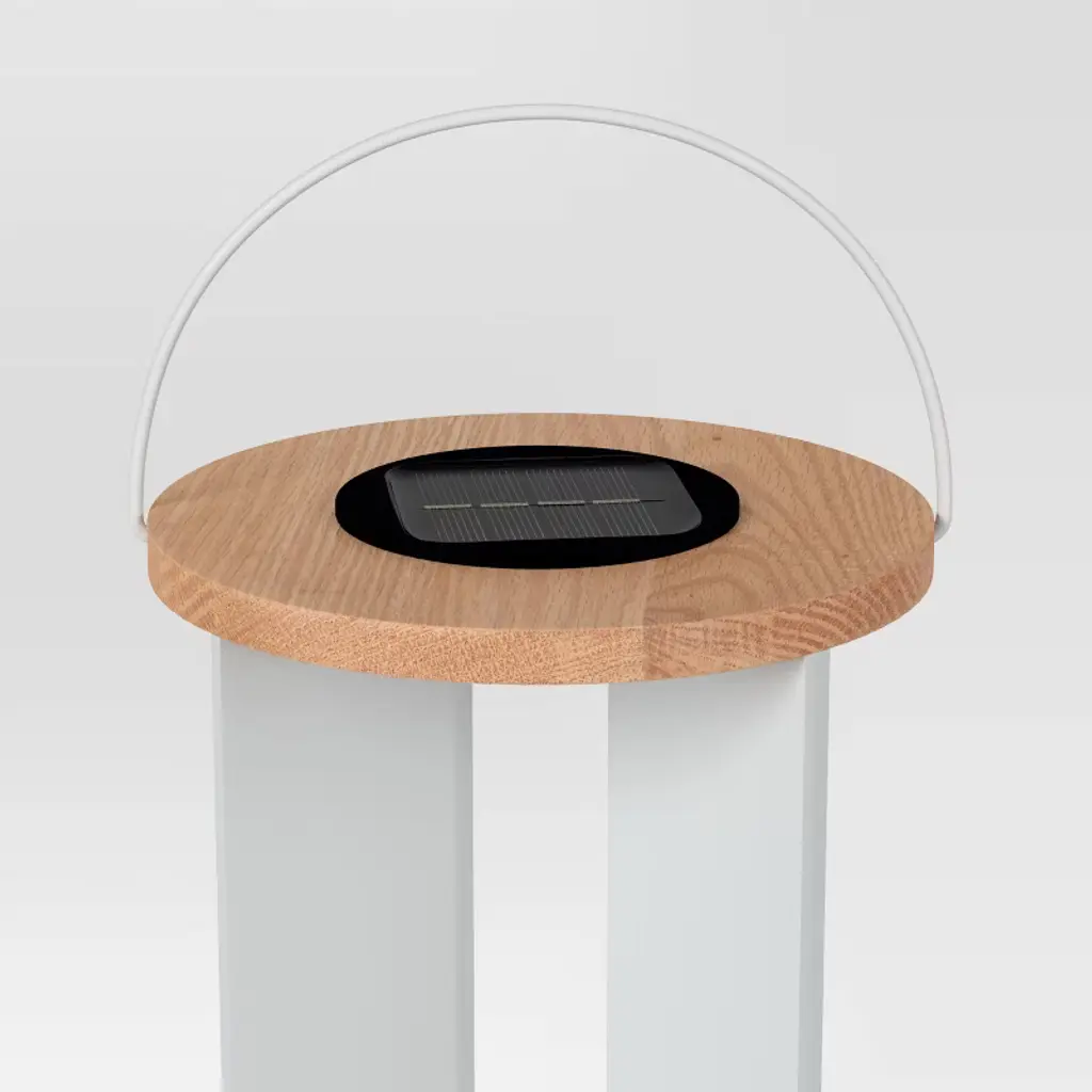 13" Wood Solar Led Outdoor Lantern Tan - Threshold™