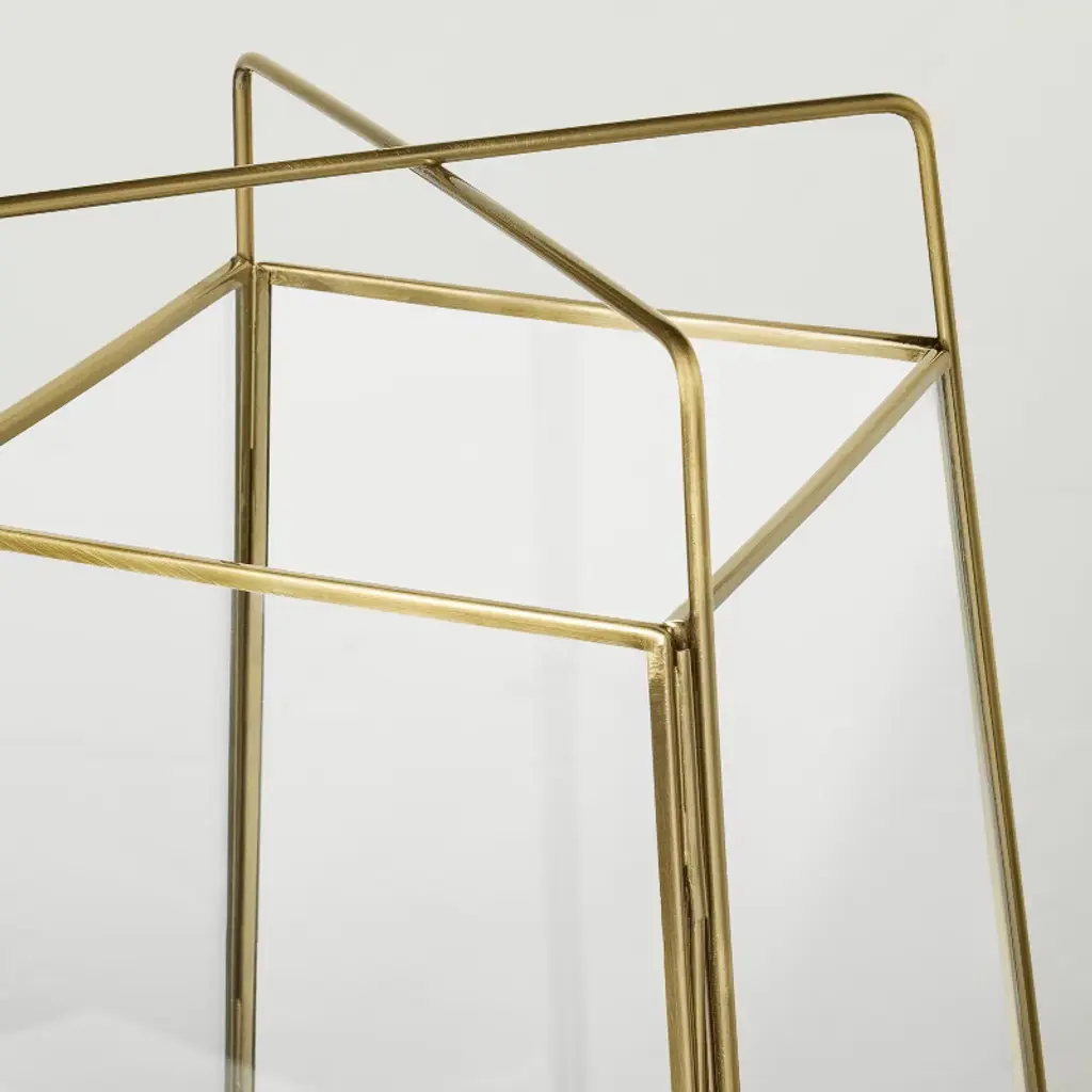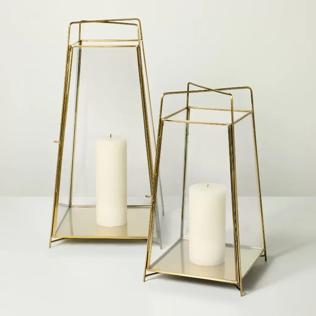 Brighten up any room with this Small Lantern from Hearth & Hand™ with Magnolia. This lantern features clear glass panes secured by a metal frame with a brass finish for luxurious charm. Easy to open with a latch closure, you can place one pillar candle inside the lantern to fill the room with a warm, soft glow. Hearth & Hand™ with Magnolia: Gather • Create • Enjoy