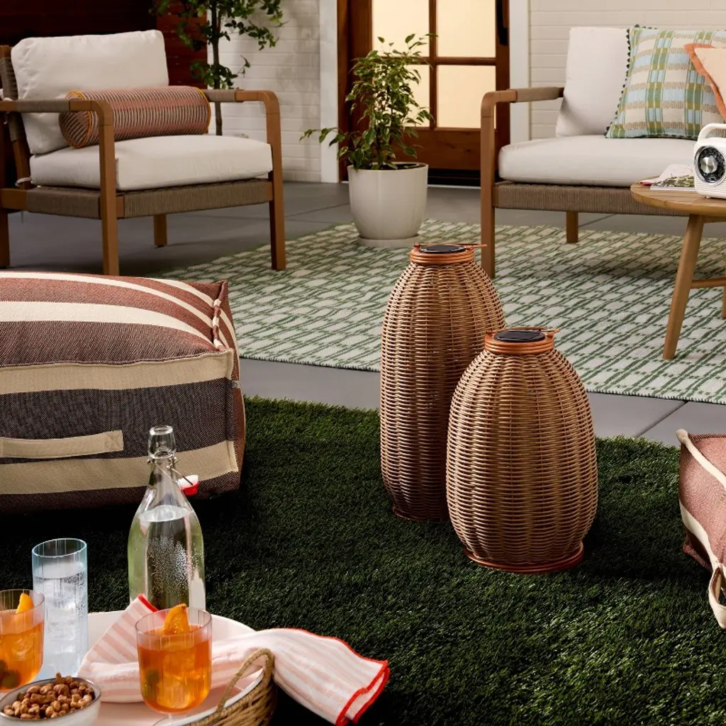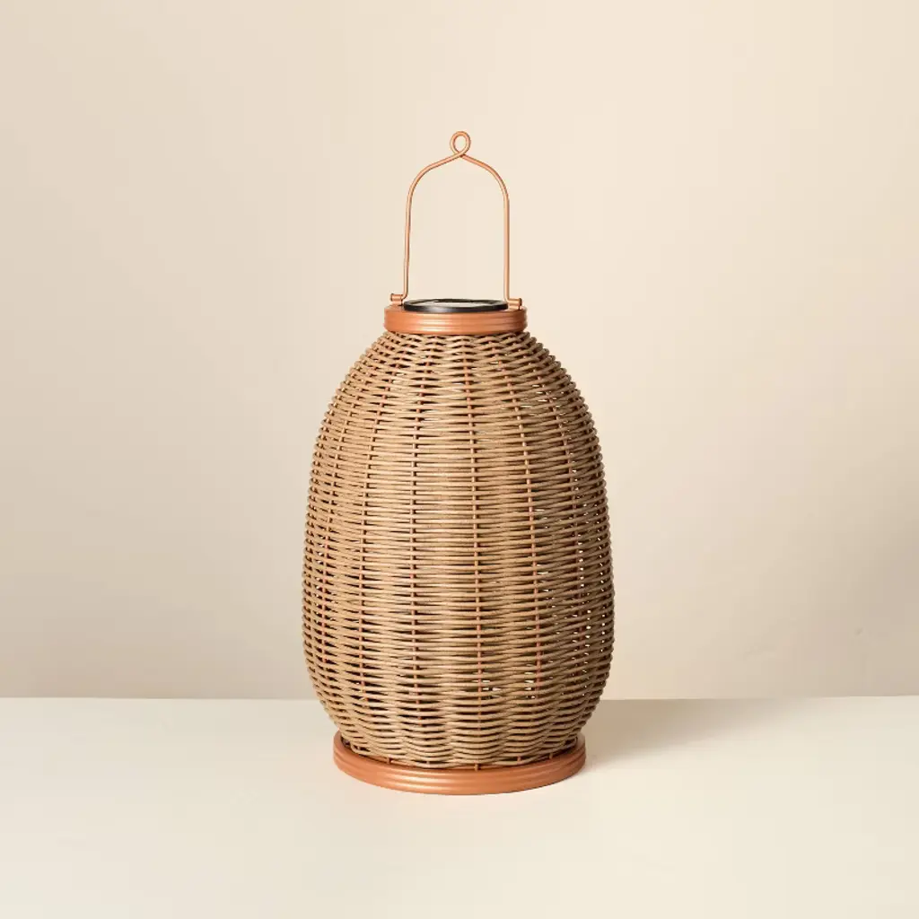 Light up your space in rustic style with the Rattan Solar Outdoor Patio Lantern from Hearth & Hand™ with Magnolia. This lantern is designed with rattan in a cylinder-like shape for artistic, textured appeal that spruces up the look of your backyard, garden or any other space. Solar powered, this cordless patio lantern includes one non-removable integrated LED bulb to cast a warm glow in your space.Hearth & Hand™ with Magnolia: Gather ∙ Create ∙ Enjoy