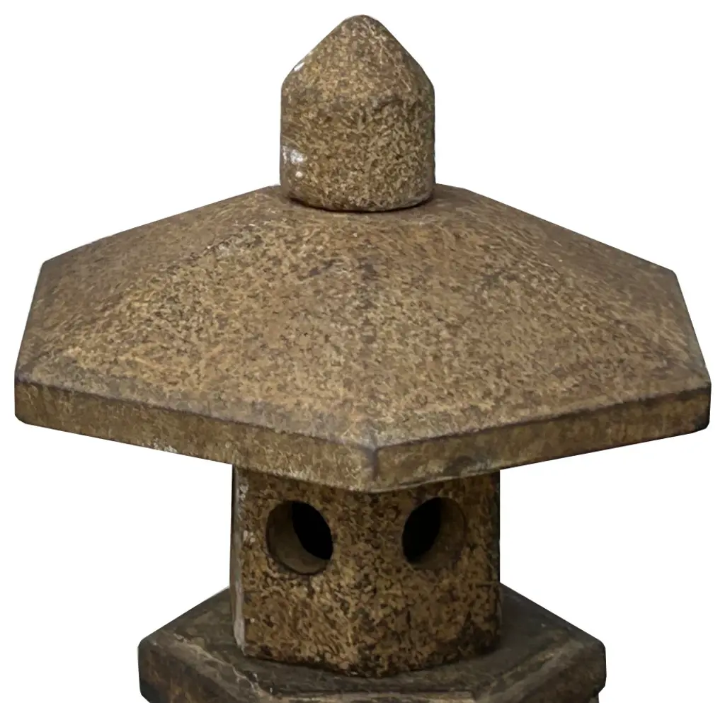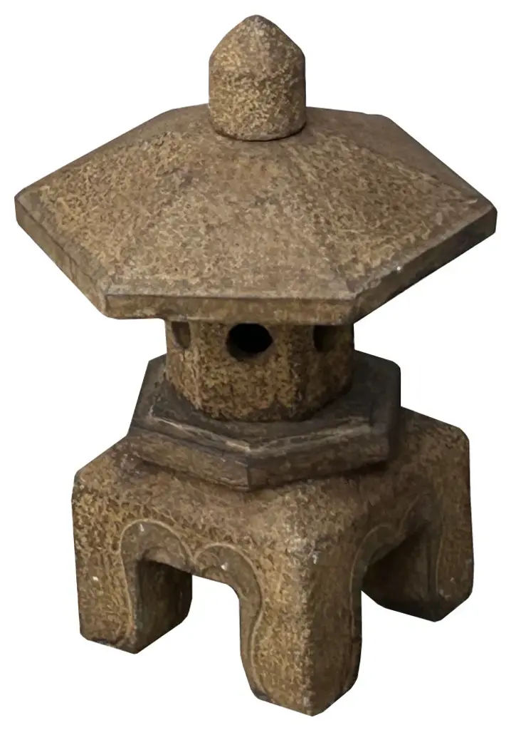 The Oriental Gray Brown Stone Hexagon Top Garden Pagoda Shape Lantern is a stunning piece that embodies the essence of traditional Eastern architecture and craftsmanship. Crafted with meticulous attention to detail, this lantern radiates elegance and charm, making it a captivating addition to any outdoor space.Constructed from high-quality gray brown stone, this lantern boasts durability and longevity, ensuring it withstands the test of time and the elements. Its hexagon-shaped top reflects the classic pagoda design, evoking a sense of serenity and harmony.The intricate hexagonal Tower top allows soft, ambient light to gently filter through, casting enchanting patterns and creating a tranquil atmosphere in its surroundings. Whether illuminated by candles, oil lamps, or electric lights, this lantern exudes a warm and inviting glow, perfect for enhancing the ambiance of gardens, patios, or pathways.Standing as a symbol of refinement and timeless beauty, the Oriental Gray Brown Stone Hexagon Top Garden Pagoda Shape Lantern is not just a lighting fixture but a piece of art that adds a touch of sophistication to any outdoor setting.Dimension: 10" x 10"x h15.5" +- 1"Origin: ChinaMaterial: StoneCondition: Good, Natural stone, natural stone marks, may have chip marks on the legsFor all USA domestic continental customers (from 48 states), there is a flat shipping fee of $160, which includes insurance and handling charges. (Additional shipping charges apply to buyers from Hawaii, Alaska, US Islands, Florida Keywest, and Canada). If you are in the San Francisco Bay Area, we warmly encourage you to take advantage of our convenient in-store pick-up option at no extra cost. Please keep all original packing material and box if damage happens.