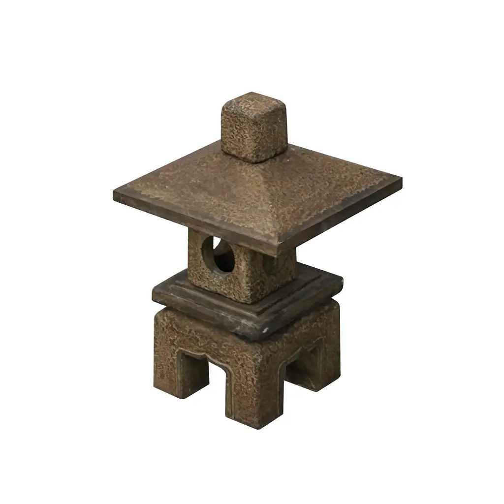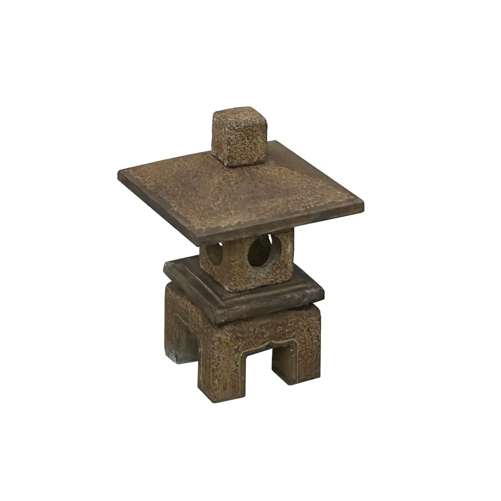 15.5" Chinese Gray Brown Square Top Pagoda Shape Garden Stone Lantern