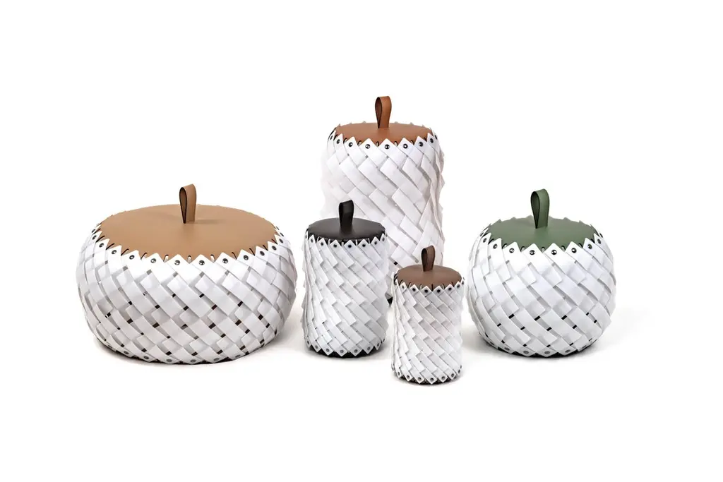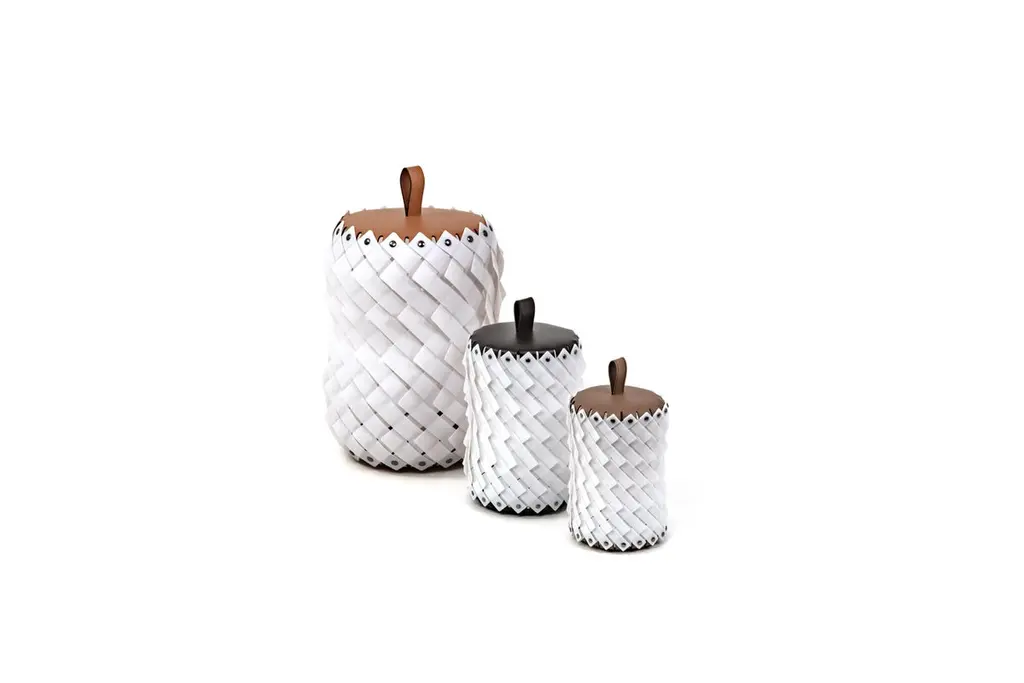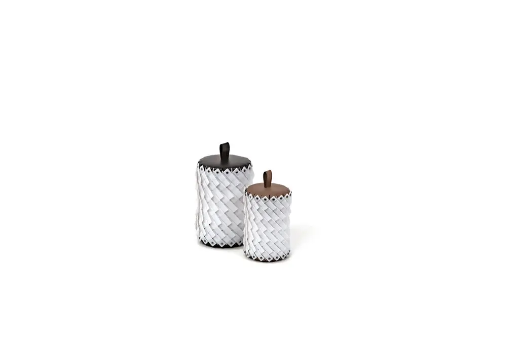 Inspired by our iconic Almeria baskets collection, Pinetti introduces a brand new family of lanterns.Wireless and USB rechargeable these lamps are made with hand-woven plastic modulus, with the base and top are made with our recycled leather. These two small dimensions work perfectly as table lamps while light colors and patterns can be changed and controlled both by using a remote control or the app "HappyLighting" to create a warm atmosphere.