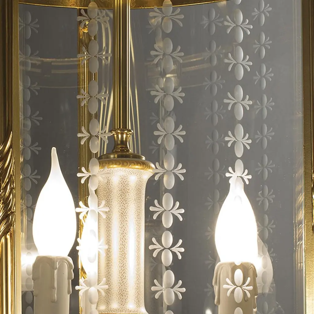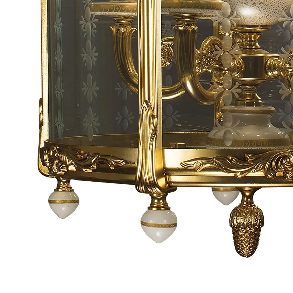 21st Century, Big Lantern With 5-Lights, Porcelain, Glass And Golden Bronze