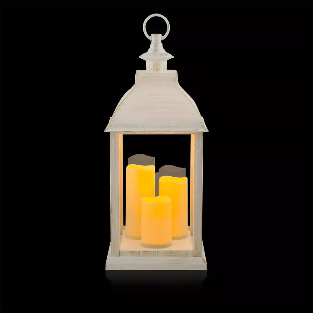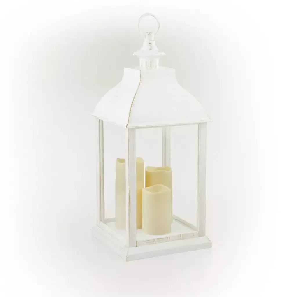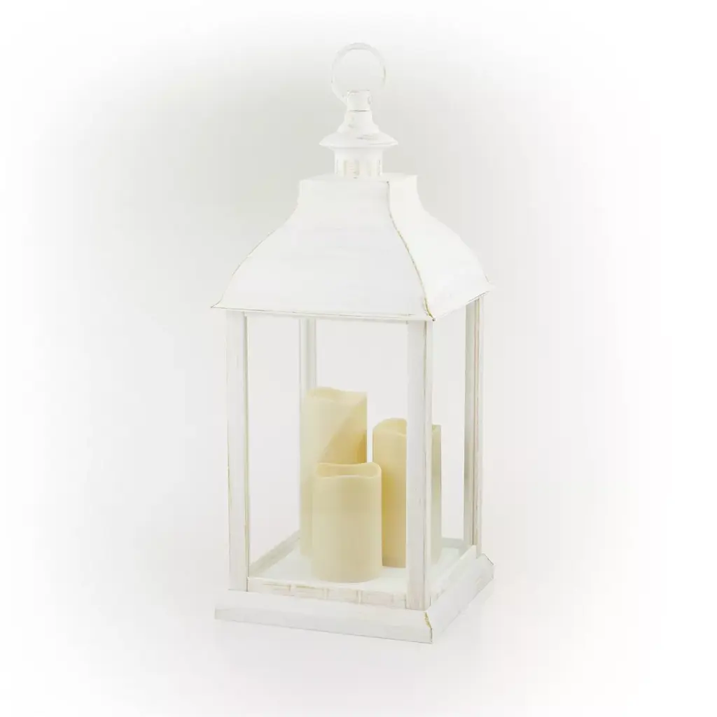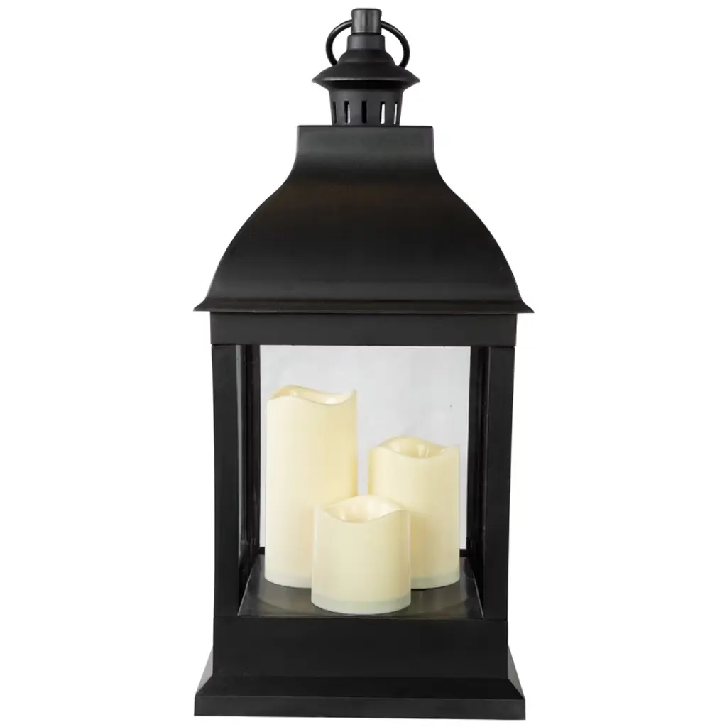 "Add contemporary style to your yard with the 22"" tall Outdoor Battery-Operated Lantern with LED Lights from Alpine Corporation. This lighted home decorative piece features 3 impressive candle LED lights from each simulated flame bulb. It’s powered by 3 AA batteries to offer your guests a warm welcome. The timer function allows you to automatically turn-off the light after 6 hours of use once the parameter is set and 18 hours of sleep before it lights up again. This lovely antique finish lantern is constructed from durable plastic and glass. Solely made tough for long-lasting quality use in your yard, garden, porch, veranda, or any indoor and outdoor space. Add one or multiple lanterns to create an enchanted home decor display. This unique lamp is perfect for display in entryways, courtyards, other outdoor living spaces, and inside your home. The decorative garden décor measures 9”L x 9”W x 22”H and 24"" while hanging to fit almost any indoor or outdoor space, and includes a one-year manufacturer's warranty from the date of purchase.Alpine Corporation is one of America's leading designers, importers, and distributors of superior quality home and garden decor products. Alpine's award-winning in-house design team continuously develops new and innovative ""statement pieces"" for your home and garden. Your outdoor living spaces will be the envy of the neighborhood with our wide assortment of fresh, fashionable and contemporary products, from beautifully crafted solar garden stakes featuring patented motion and fiber optic lighting technology to gorgeous glass and glow-in-the-dark birdbaths and feeders."