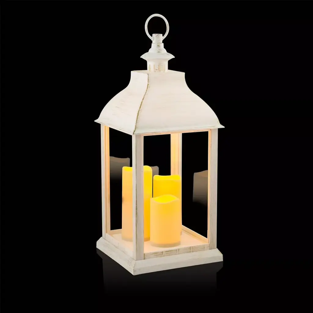 22" Candlelit Lantern With Led Lights White - Alpine Corporation: Plastic Decorative Orb, Outdoor Use, Requires 3 Aa Batteries