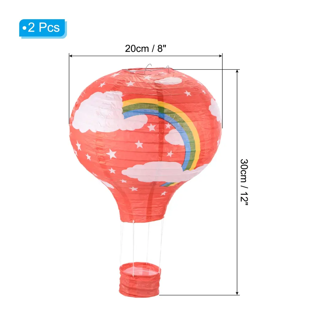 2Pcs 14x12in Rainbow Rainbow Hot Air Balloon Paper Lantern - 14x12inch - Pink
