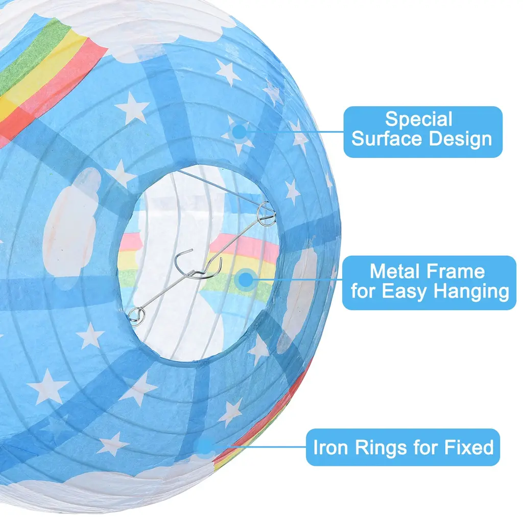 Without losing simplicity and sophistication, our paper lanterns provide a stylish and artistic decorative project. Widely used at party occasions, such as birthdays, weddings, bridal showers, theme parties, family gatherings, bachelorette parties, engagement parties, new years' parties, Christmas parties, anniversary, graduations, garden decorations, room decor, Easter basket stuffer, etc.SpecificationMaterial: Paper, MetalShape: BalloonColor: BlueSize: 35x30cm/ 14x12inch (LxDia)Package List: 2Pcs x Paper Lanterns, 2Pcs x InstructionsAdvantageOur paper lantern is made of quality paper, with a foldable design, can be reusable and easily stored. Easy to assemble and disassemble, comes with a sturdy hanging frame, you can hang the paper lanterns anywhere you want to decorate by using the hanging frame. Distinctive design of our paper lanterns makes decorations more stand to add party atmosphere.InstructionNot only can you paint on the paper lanterns and add your favorite elements, but you can also use them with LED lights or other lights, and hang them from the ceiling, wall, window, door, or branch to create a cheerful party atmosphere. Also, you can DIY them according to your imagination, creating unique handicrafts.NOTEPlease do not be rough when using it and avoid contacting the paper garlands with water.