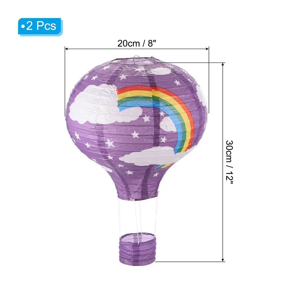 2Pcs 14x12in Rainbow Rainbow Hot Air Balloon Paper Lantern - 14x12inch - White