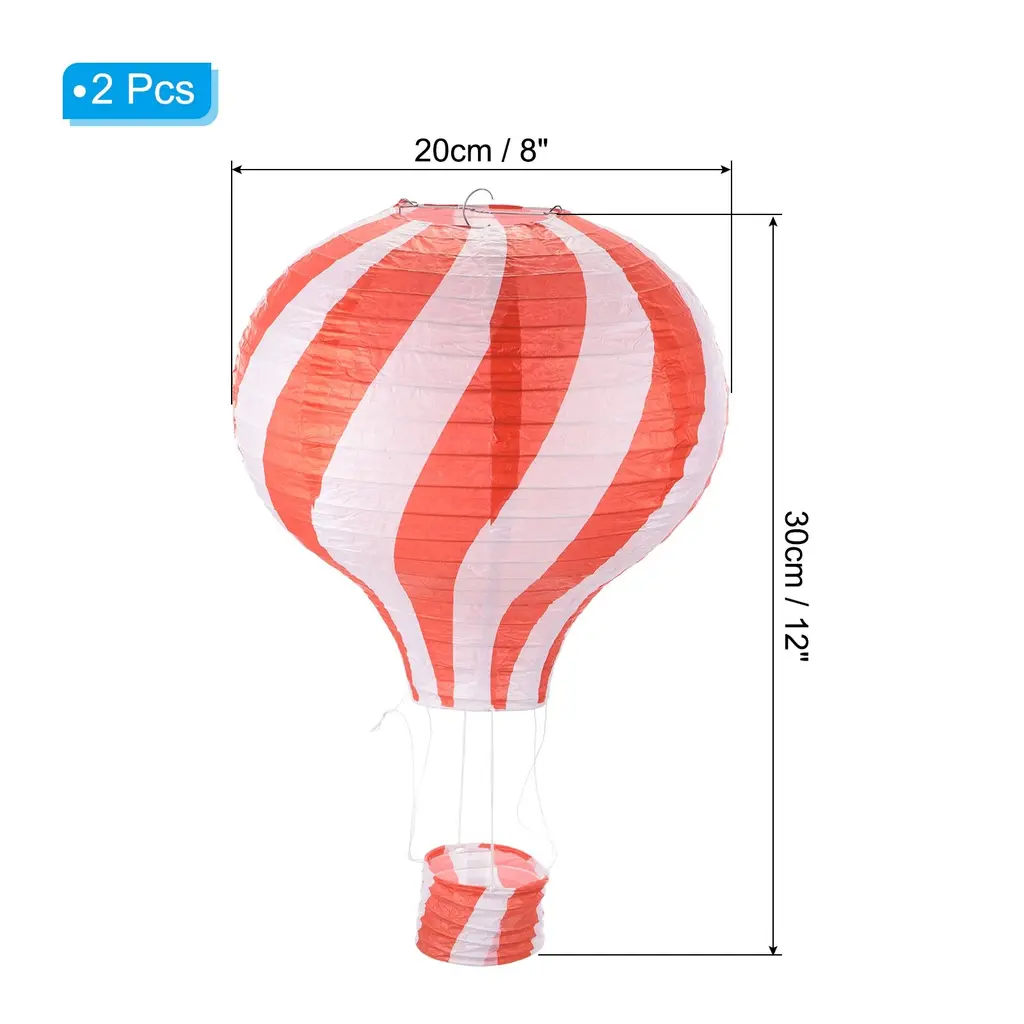 2Pcs 14x12in Rainbow Wavy Stripes Hot Air Balloon Paper Lantern - 14x12inch - Red