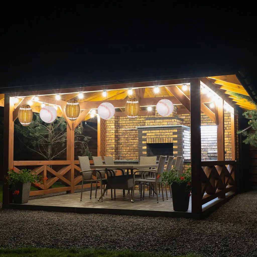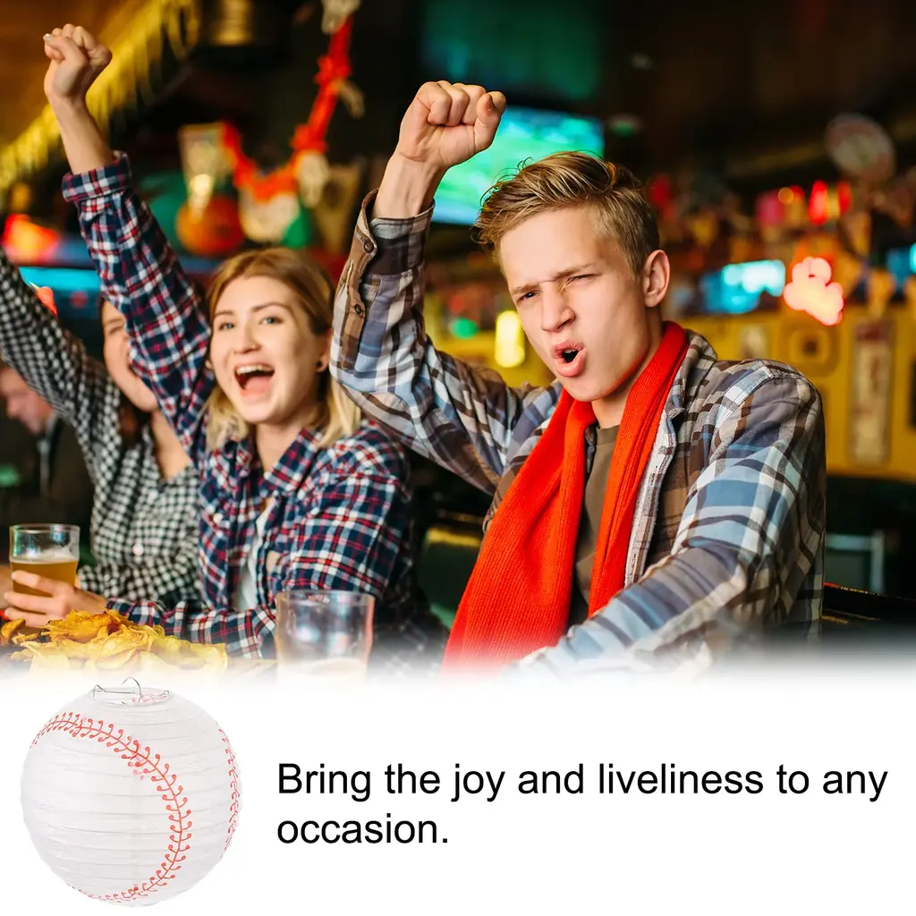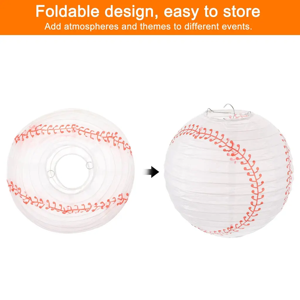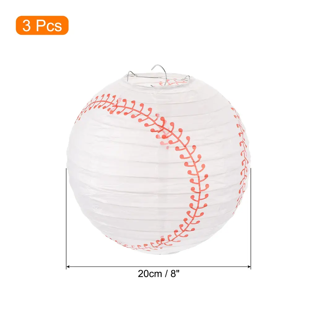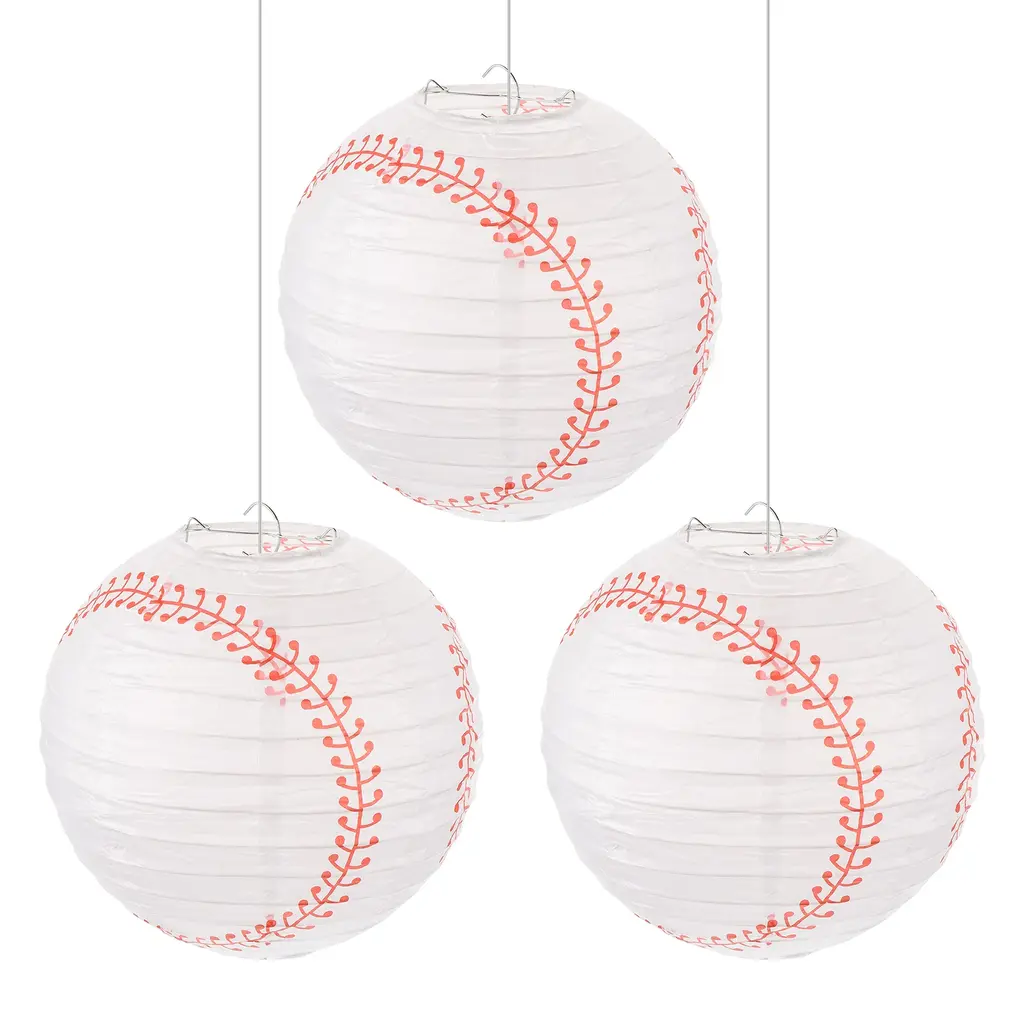 3 Pcs Baseball Paper Lanterns Round Hanging Chinese/japanese Decor - White - 8"