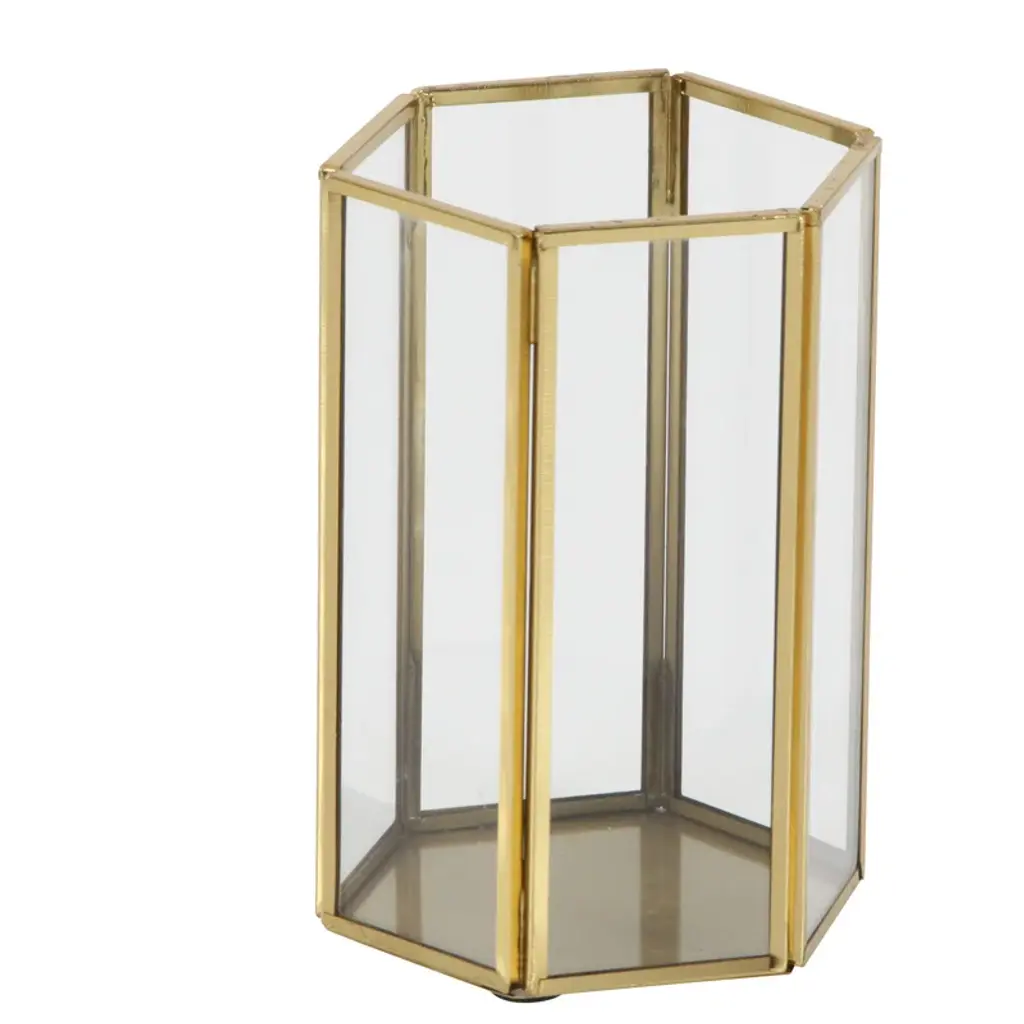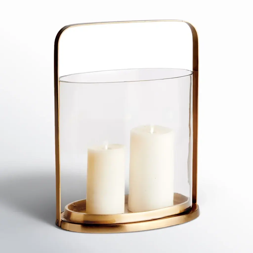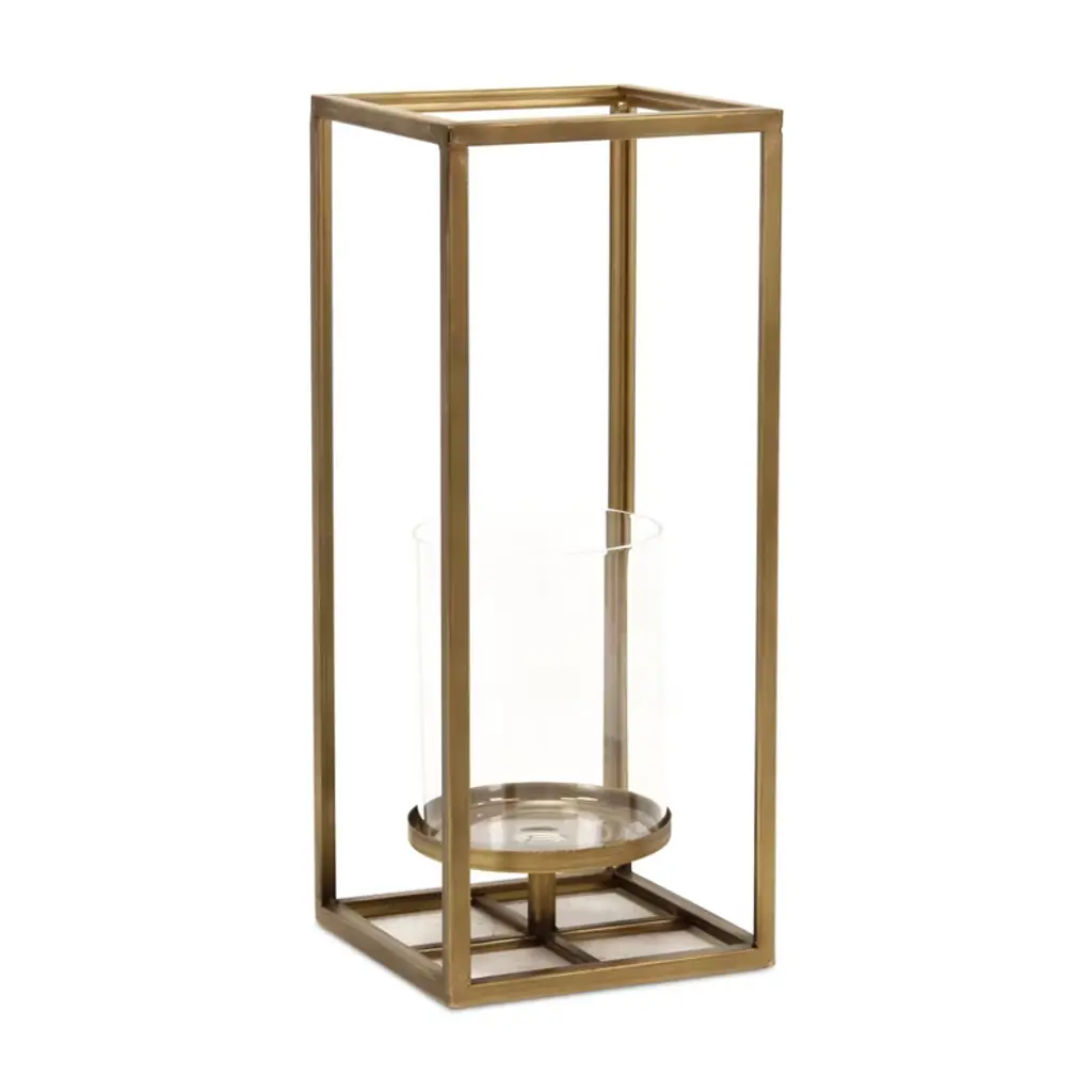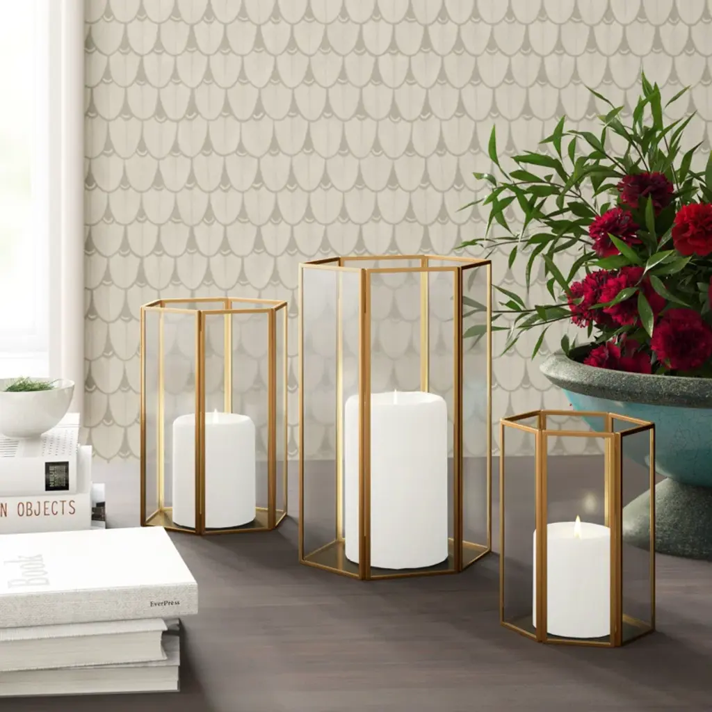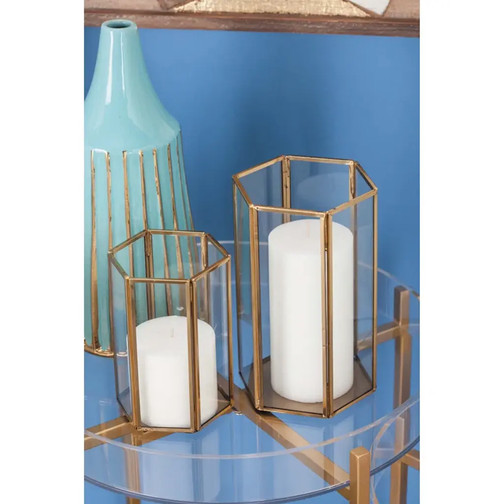 3 Piece Glass And Metal Tabletop Hurricane Holder Candle Lantern Set