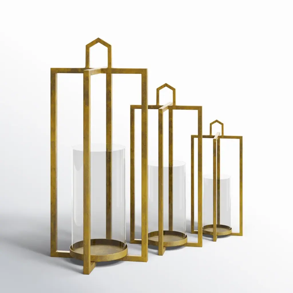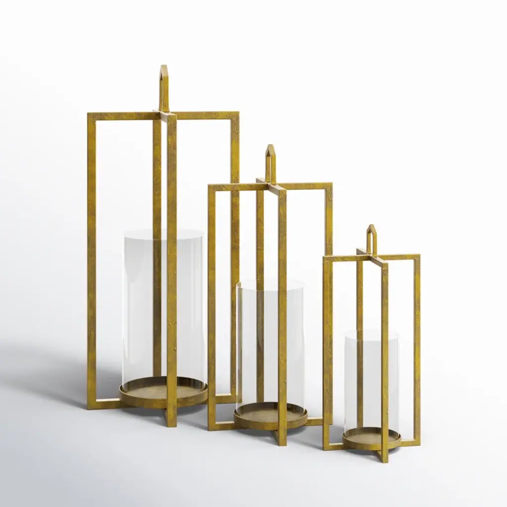 Illuminate your room in style with the elegant lantern set in rustic gold. The three sizes create visual interest and a beautiful candlescape for your table or mantle.