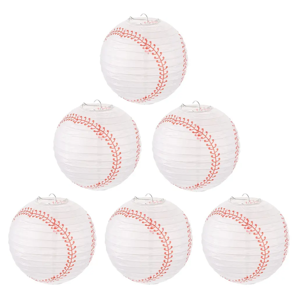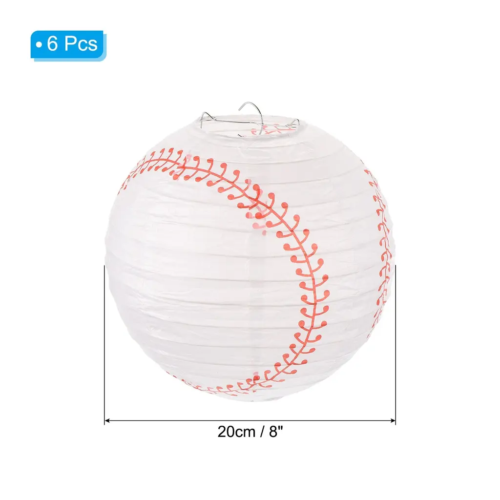 6Pcs Baseball Paper Lantern For Party Decorations, White - 8In